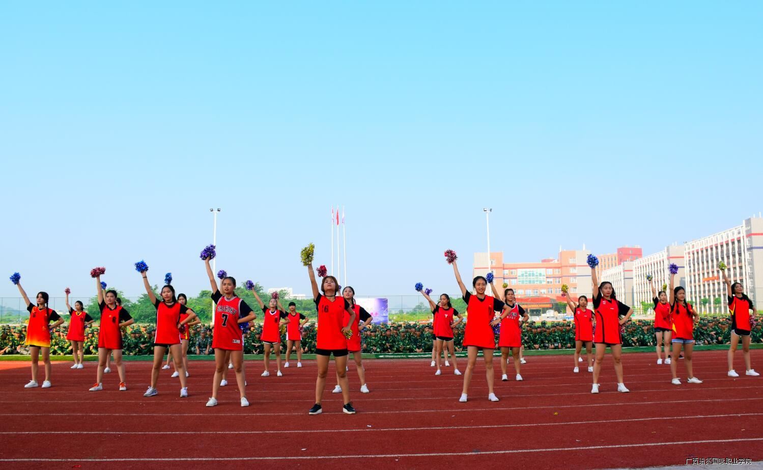 活力四射的啦啦操表演 黄勇学院长助理宣读了《关于表彰2016级新生军训先进集体和先进个人的决定》后🧔🏻,在座领导分别为获得“优秀会操连队”、“优秀标兵”荣誉称号的连队和个人颁奖。教官代表贺秋平队长🔑、优秀军训标兵代表黄育桃同学🏋️、辅导员代表黄志征老师分别发言。