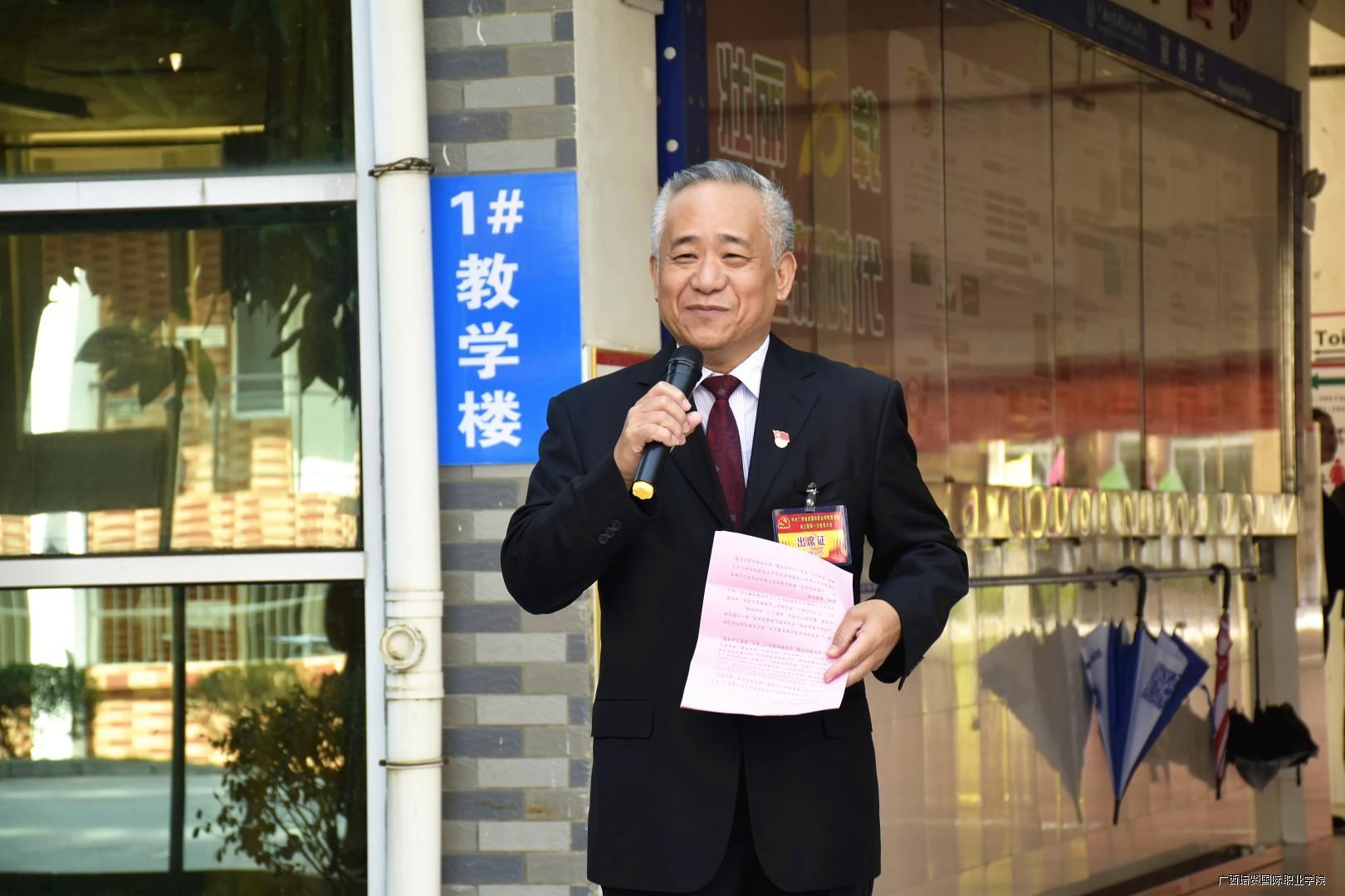 △ 图为平果大学园区党工委书记杨敏捷同志讲话