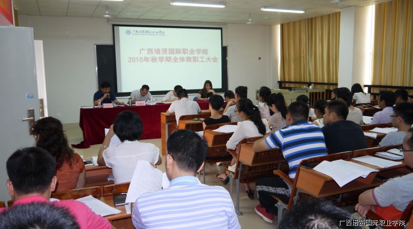 1. 广西彩神国际职业学院召开新学期全体教职工大会