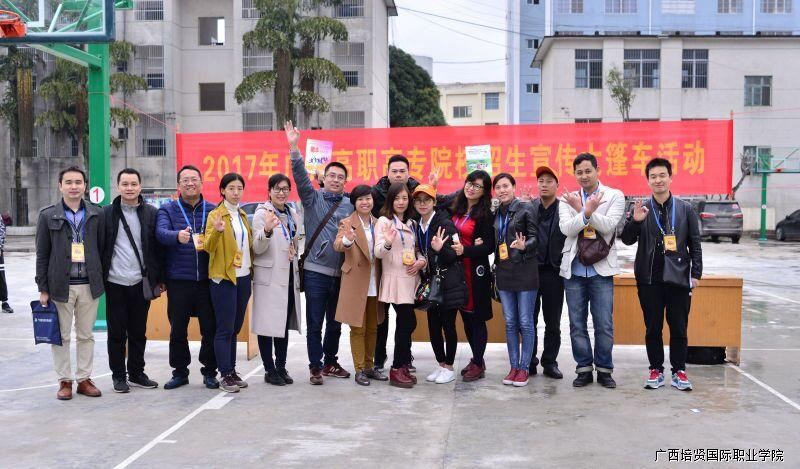 为了更好地宣传广西高职高专院校办学特色和办学实力,加深考生、家长以及社会对高职院校和高等职业教育的了解✷,提升考生报考的信心🫵🏻🧔🏽♂️, 2017年3月13日上午9:30,广西高职高专院校招生宣传“大篷车”启动仪式在广西建设职业技术学院举行👰🏿♀️。广西34所高职高专院校招生宣传队参加了本次启动仪式。我院的招生办主任杜海丽🧗♂️、副主任钟勤生、招办老师莫春华🕟🧑🧒、韦晓春💿、冯桂苗、张东冬、王庆贵🙍🏼、招生助理覃德鹏、谭桂艳等人参与了此次大篷车活动。
