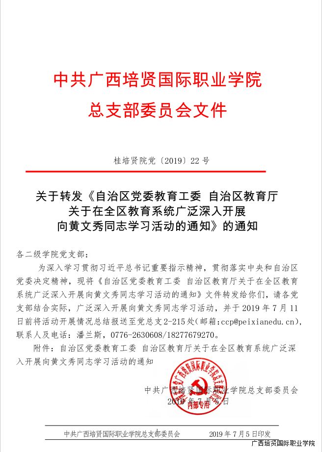 1. 关于转发《自治区党委教育工委 自治区教育厅关于在全区教育系统广泛深入开展向黄文秀同志学习活动的通知》的通知