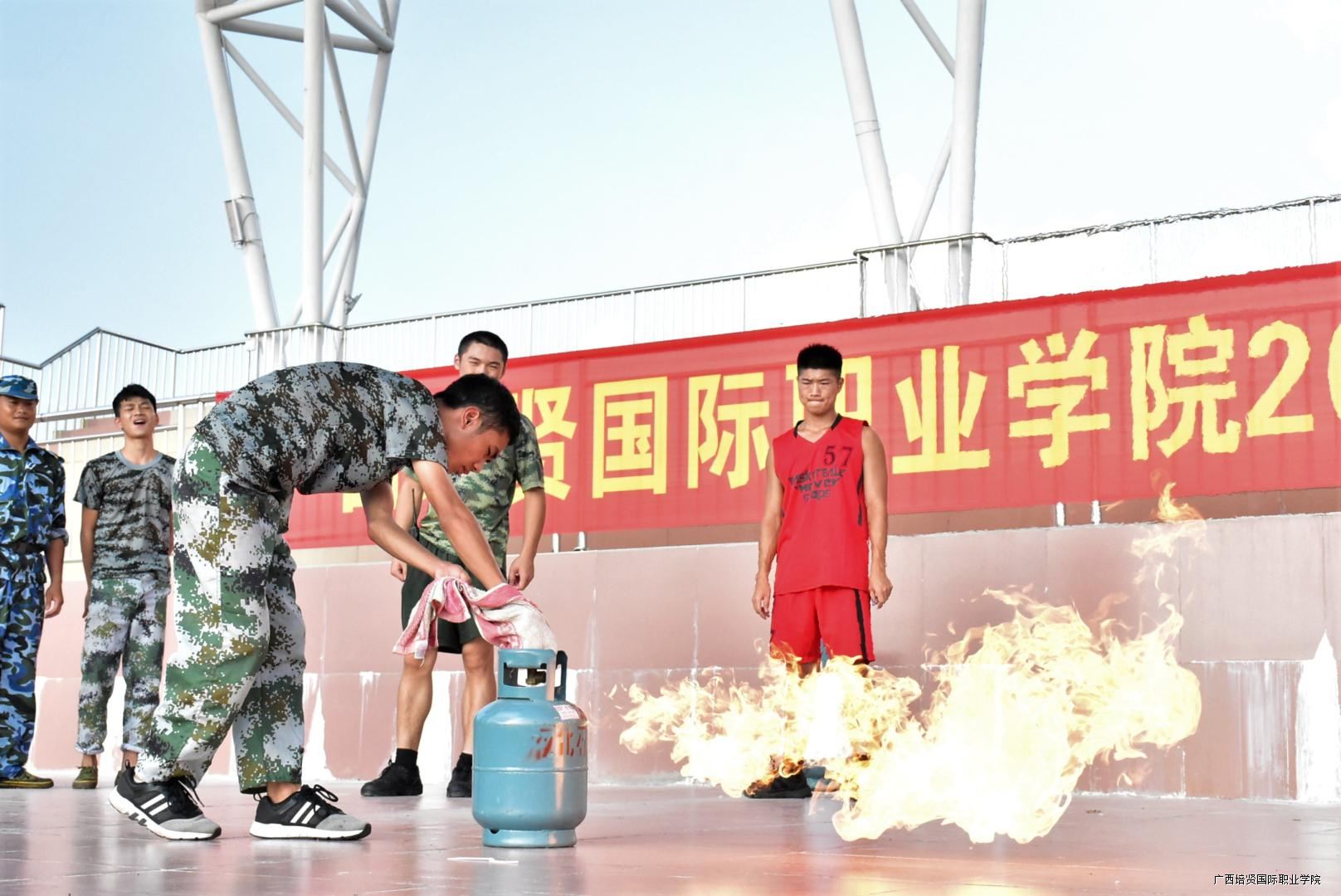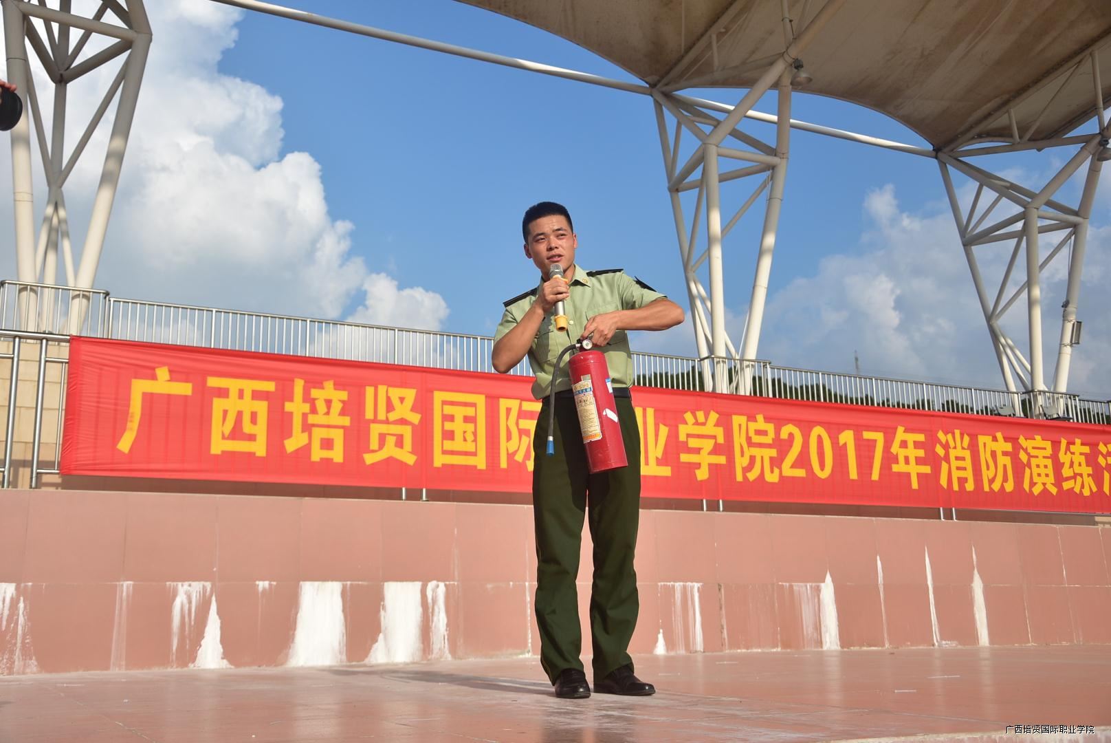 在演练现场,武警百色市消防支队平果中队的中队长胥磊认真、仔细地向2017级学生讲解了消防知识和灭火器的正确使用方法👩🏿🎓,以及遇到煤气罐着火这种紧急情况该如何处理,并现场模拟煤气罐着火,示范灭火的正确动作。