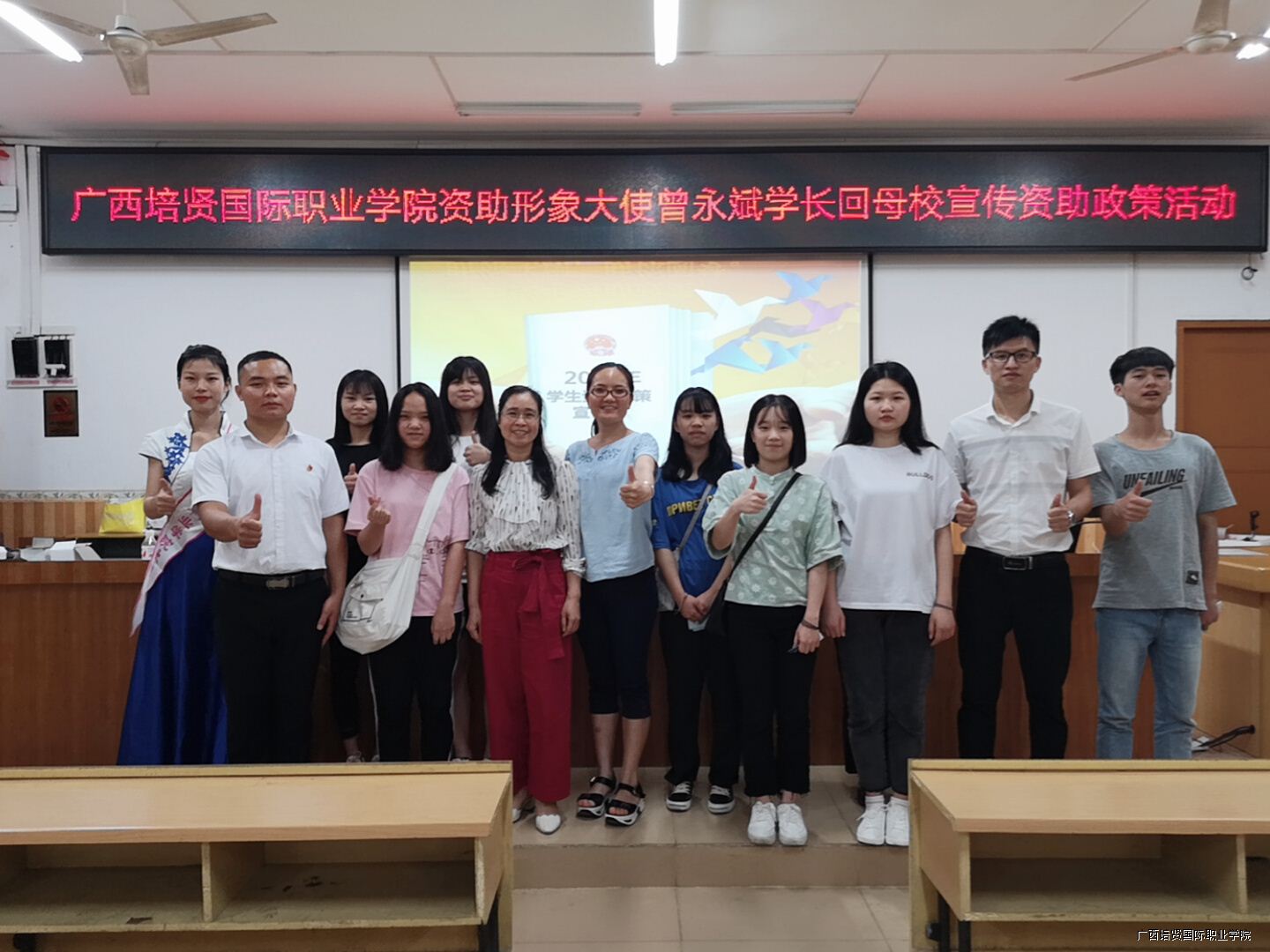 马山中学是我校资助形象大使曾永斌同学的母校🤸🏿。曾永斌同学是我校2016级商务英语专业学生。他作为一名中共预备党员能在学生中起到先锋示范作用🫲🏿,在校期间不仅学习成绩优异,还注重社会实践、创新,综合素质强🫅🏼,荣获2018年国家奖学金,并担任我校的资助形象大使🔛。本次活动主要由他向高中学弟学妹分享他通过资助成长成才的励志经历。