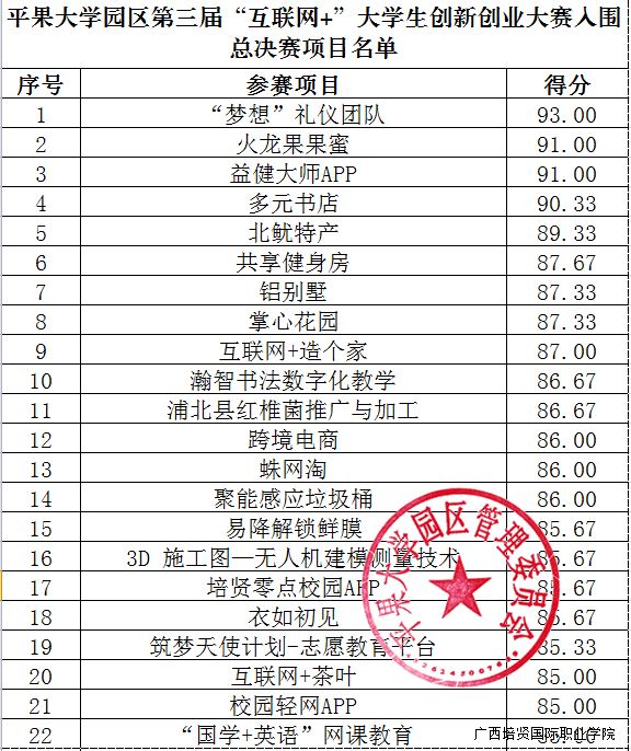 1. 平果县第三届互联网+创新创业大赛获奖情况公示