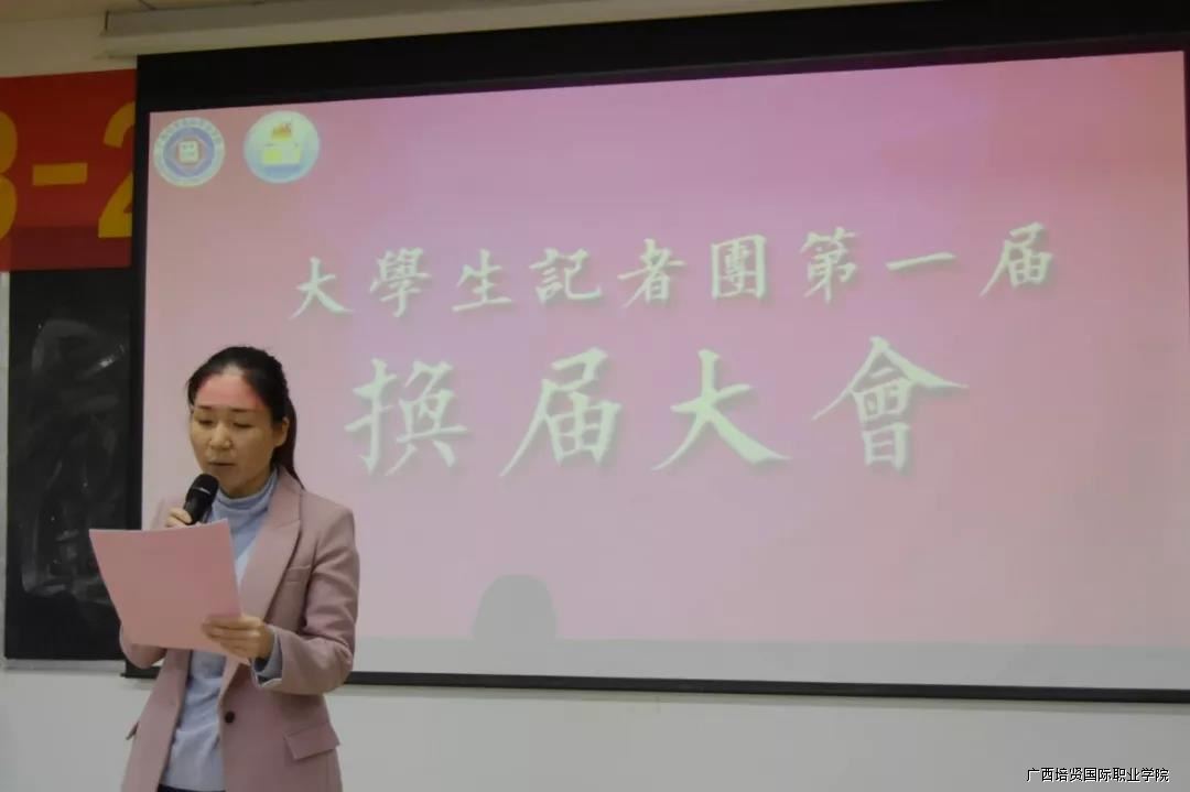 2018年12月27日晚,广西彩神国际职业学院大学生记者团第一届换届大会在学术报告厅110隆重举行。出席本次大会的领导及嘉宾有学院副院长陆秋利,党支部副书记郭玉针👱🏼♂️,学工处处长陆宇秋🫅🏿,大学生记者团指导老师陈艳秋☝️,新媒体中心韦光安老师和陆世通老师以及学院各社团代表🐀、兄弟院校广西幼儿高等专科学院⛽️、广西工程职业学院大学生记者团代表👳🏿♀️。