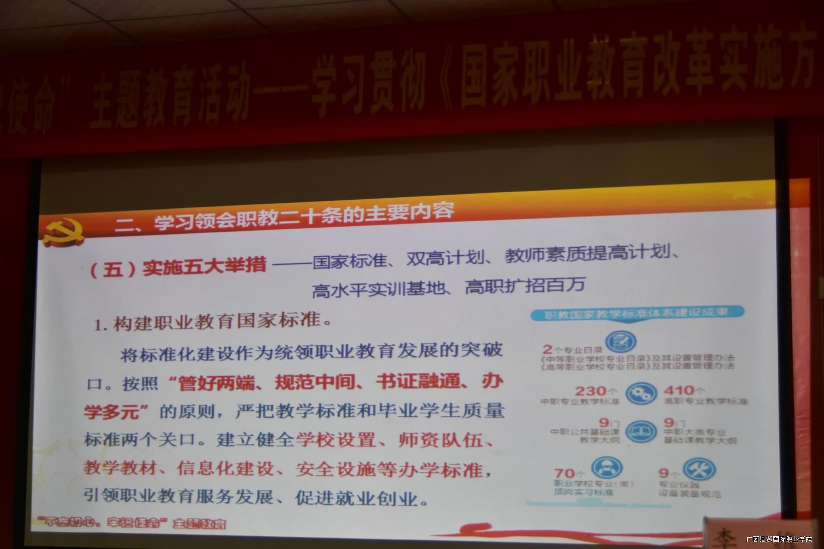 1. 我校举行”不忘初心👨🏽‍🦱,牢记使命“ 主题教育活动—学习贯彻《国家职业教育改革实施方案》主题讲座