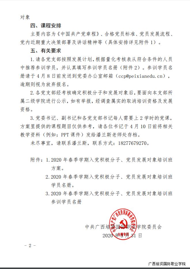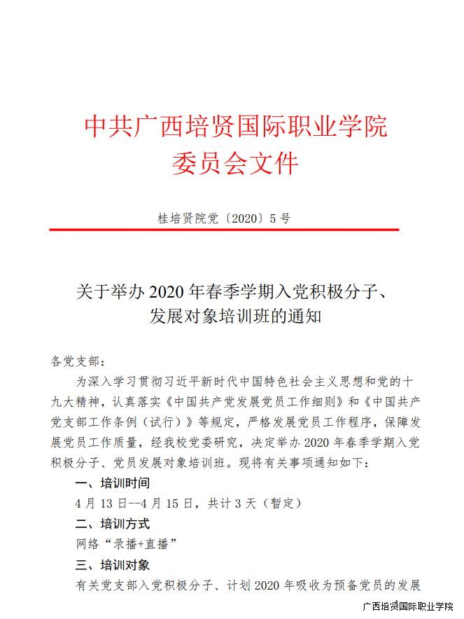 关于举办2020年春季学期入党积极分子、党员发展对象培训班的通知
