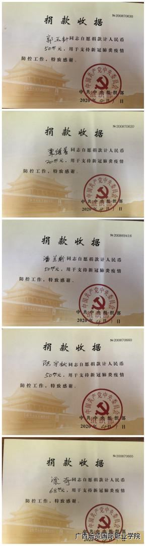 △部分党员在此次疫情捐款行动中的捐款收据