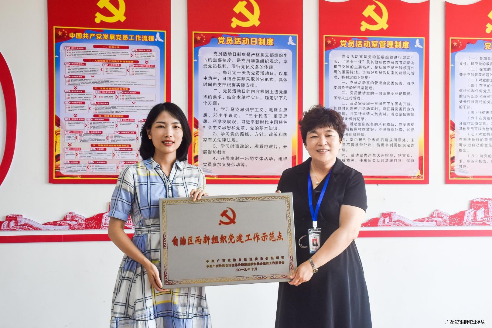6月8日下午,平果市委组织部副部长🤌🏻、市两新组织党工委书记周蔓同志在平果市两新组织党工委办公室主任黄茜茜同志的陪同下专程将“自治区两新组织党建工作示范点”荣誉牌匾送到我校。我校党委书记、自治区督导专员谭波同志,党委办公室主任💧、组织部部长郭玉针同志热情接待了周蔓副部长一行 3人。