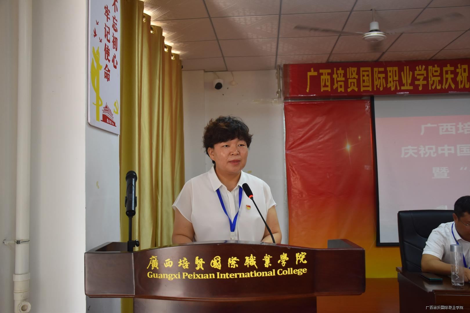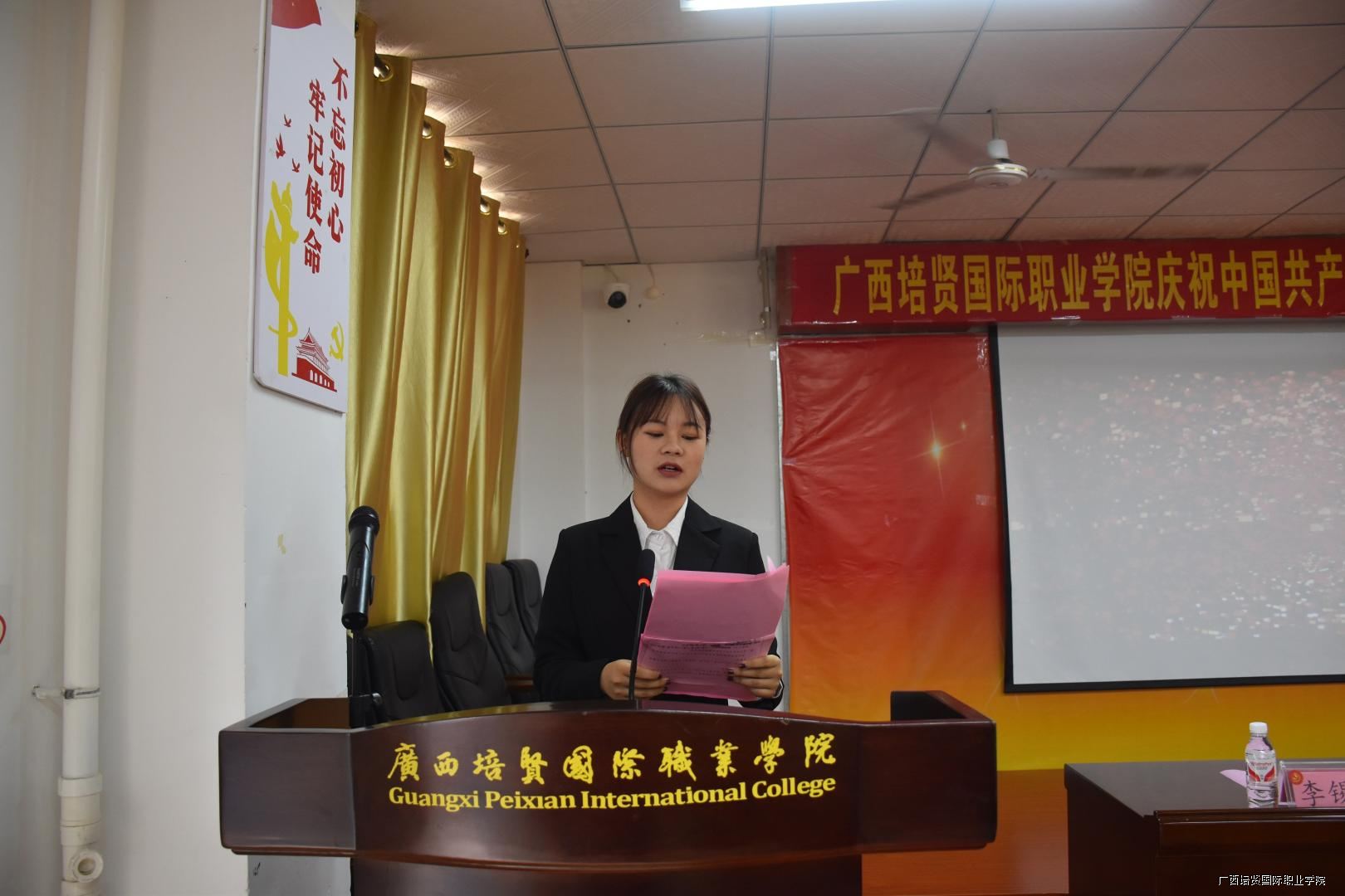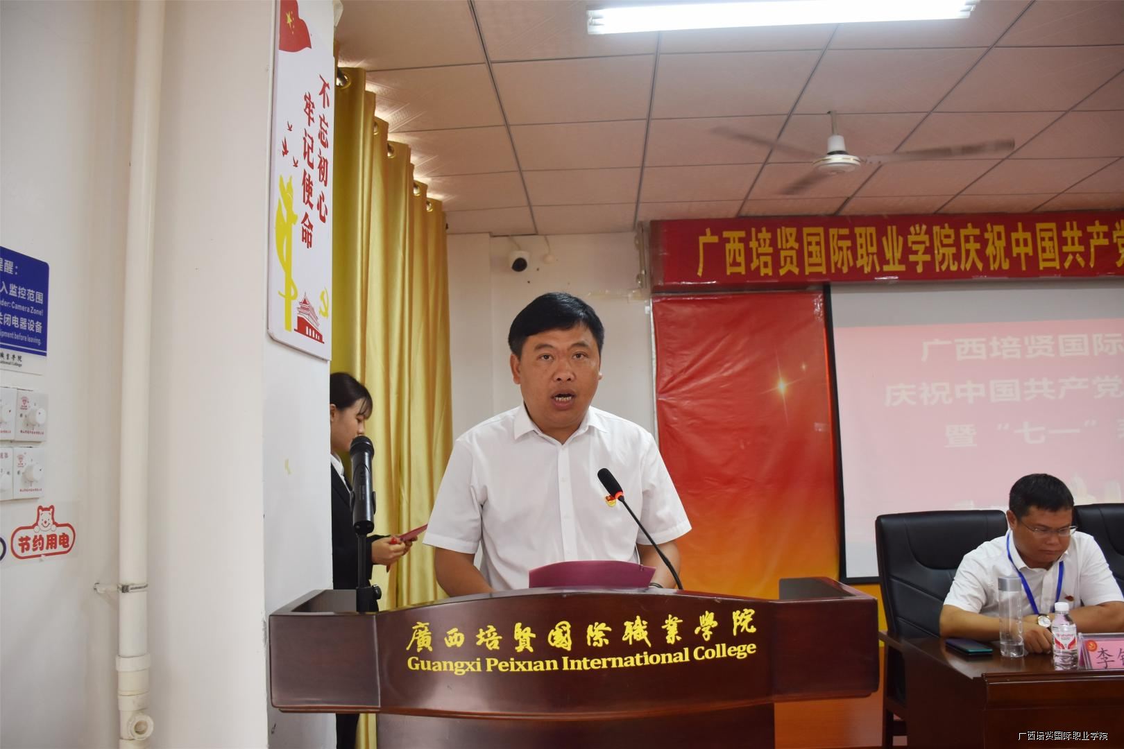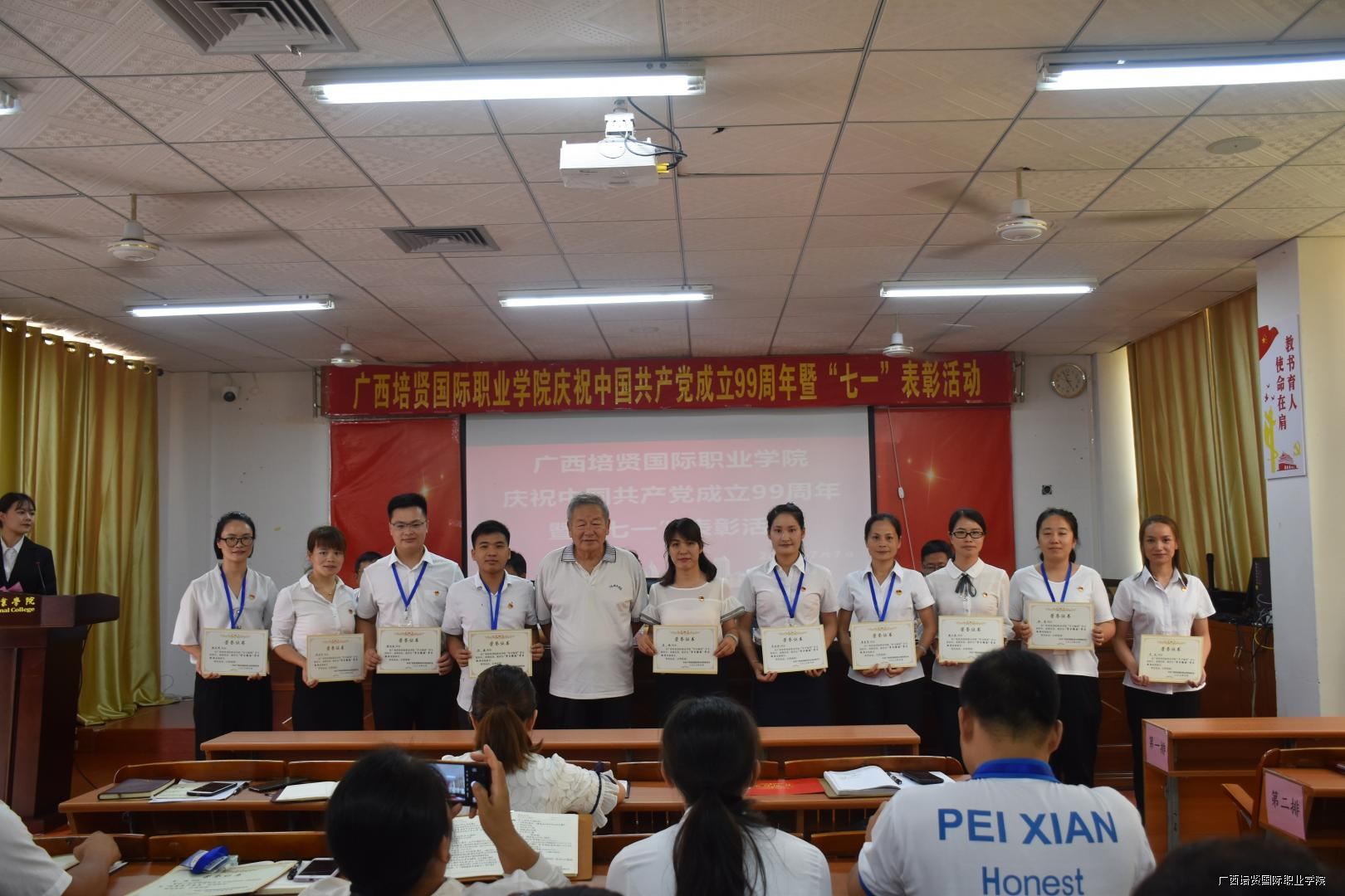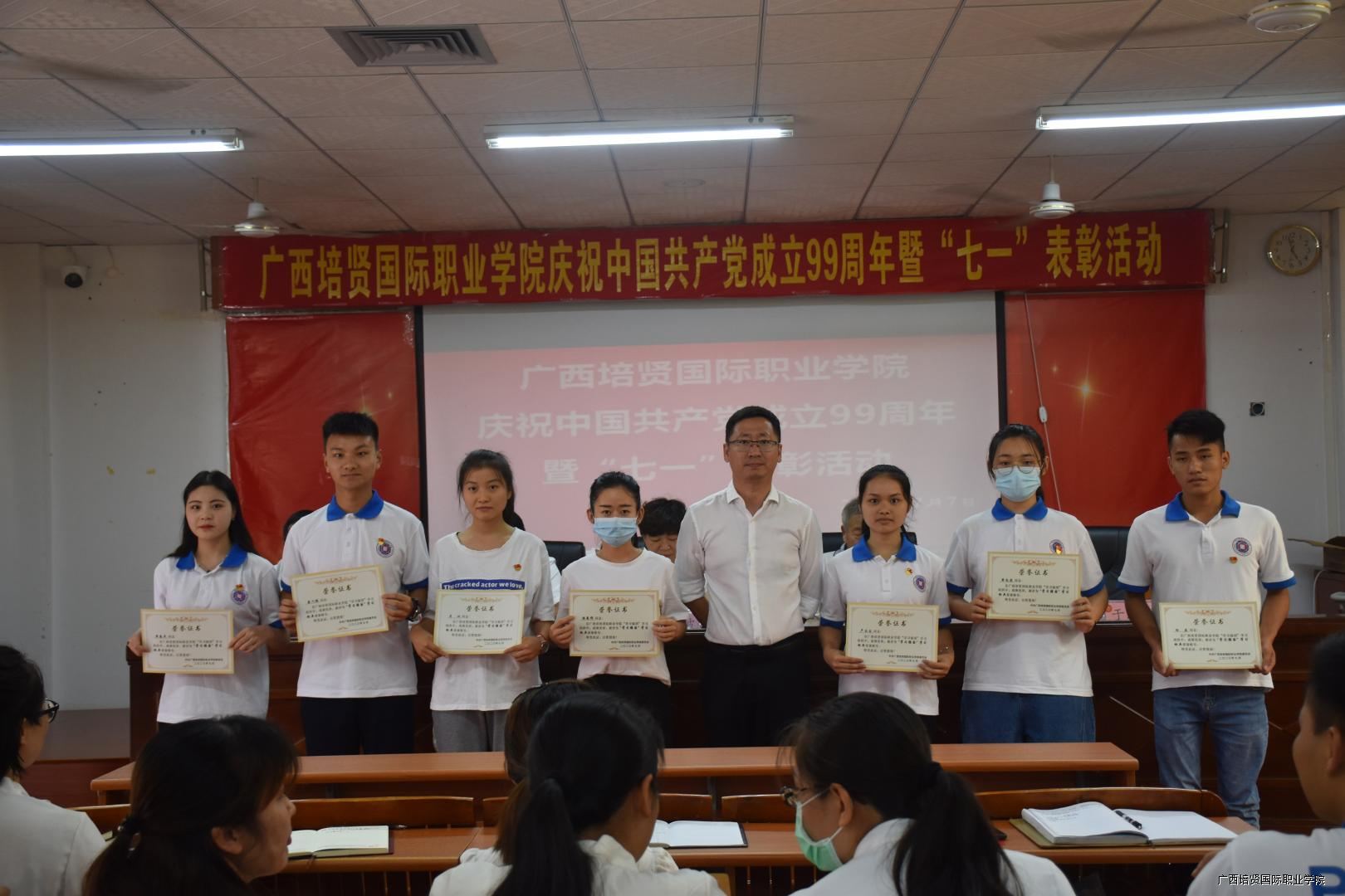 大会的最后一项议程,在我校一栋教学楼大厅,面对着鲜红的党旗,由互联网营销学院党支部书记黄吉萍同志领誓⛑️,新党员进行了入党宣誓仪式,老党员重温了入党誓词,自此🌷,我校庆祝建党99周年暨“七•一”表彰大会圆满落下帷幕。
