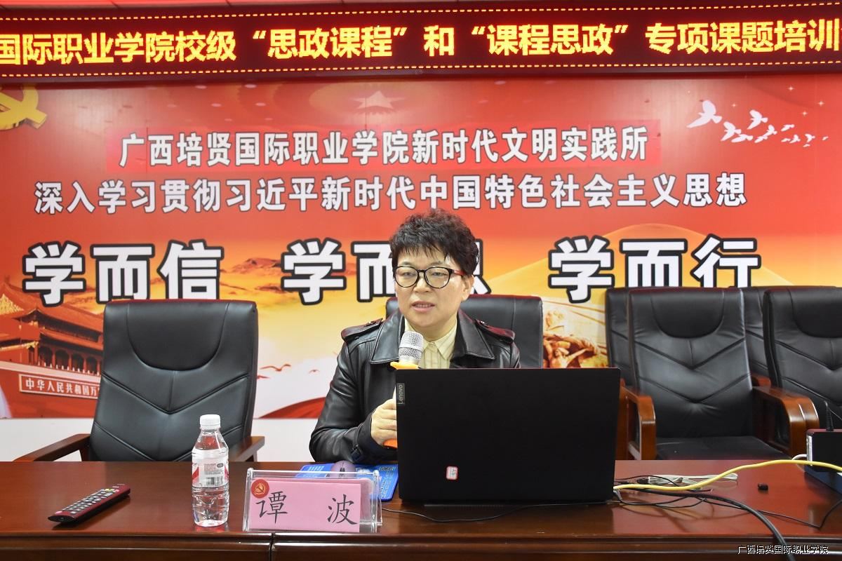 为深入学习习近平新时代中国特色社会主义思想,贯彻落实全国教育大会精神,贯彻落实习近平总书记在全国高校思想政治工作会议、全国学校思想政治理论课教师座谈会上的重要讲话精神🥏,深入推进我校思想政治理论课教学实践⛔️,充分发挥课堂主渠道在学校思想政治工作中的作用,使课程思政与思政课程协同发展,加快构建“三全育人”大格局🙍🏿。10月15日早上👠,我校召开“思政课程”和“课程思政”专项课题培训会👷🏼‍♀️,本次培训会由我校党委书记、督导专员谭波教授进行授课👩‍❤️‍👨。