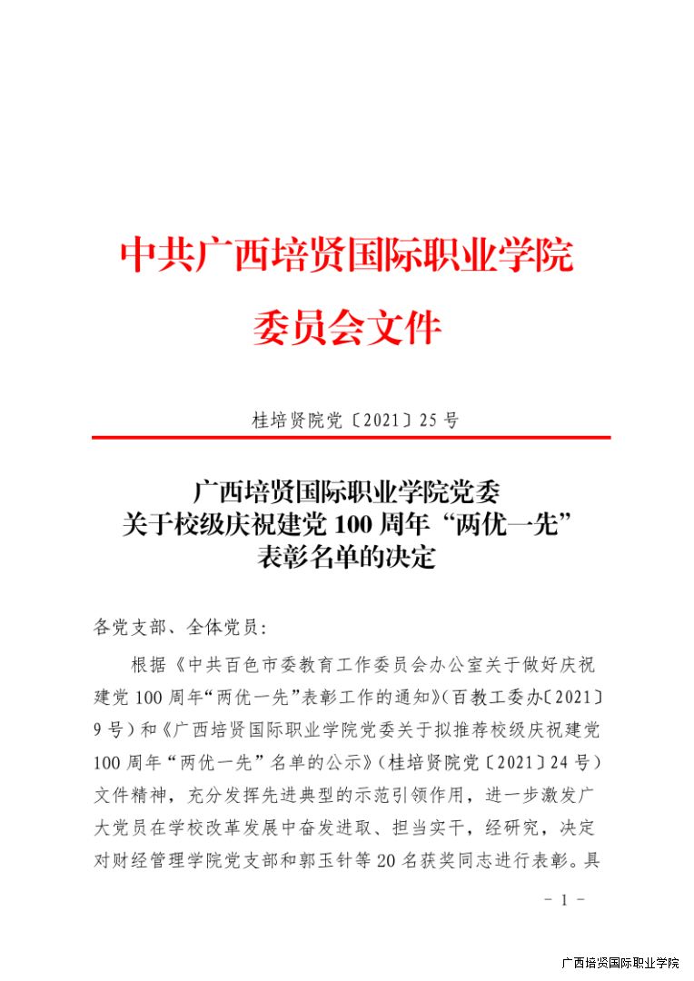关于校级庆祝建党100周年“两优一先”表彰名单的决定