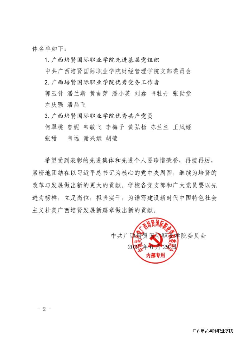 广西彩神国际职业学院党委荣获“百色市先进基层党组织”荣誉称号