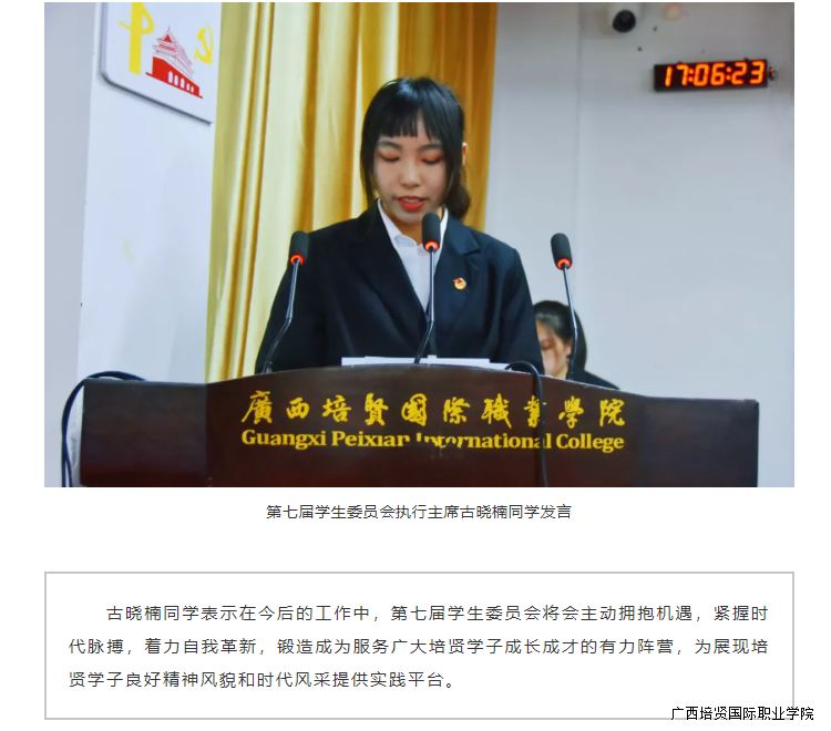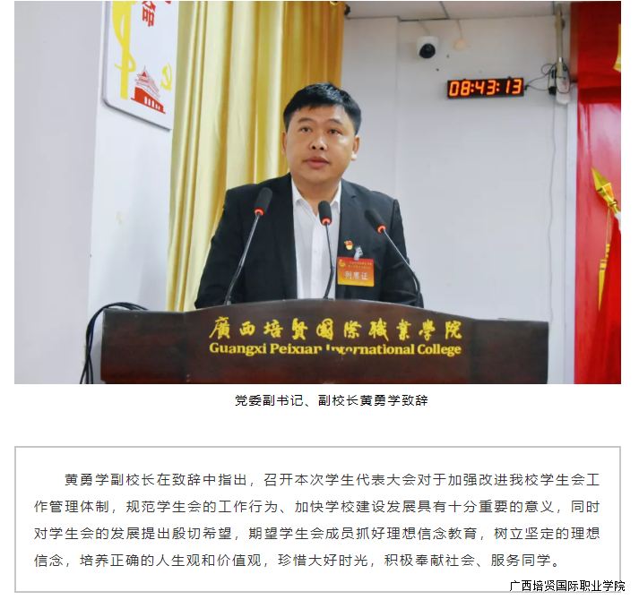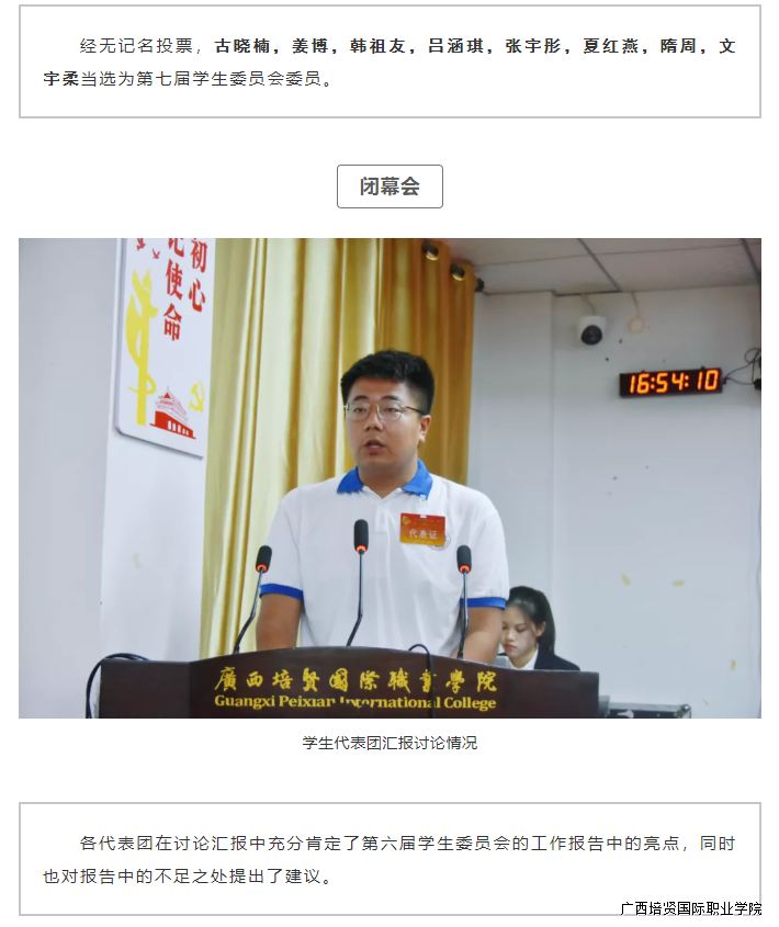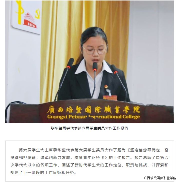 2020年11月24日上午,我校第七次学生代表大会在110学术报告厅胜利召开。我校党委书记谭波,副校长吴开珊,党委副书记、副校长黄勇学,副校长于灏洋,副校长李锡武,学校党政办公室、党委宣传部🧸、学工处、教务处、各二级学院主要领导老师出席会议🤯,以及来自我校各二级学院的120名学生代表以及各校级组织列席代表参加会议 。大会回顾总结了广西彩神国际职业学院第六届学生委员会工作,选举产生了新一届广西彩神国际职业学院学生委员会成员。