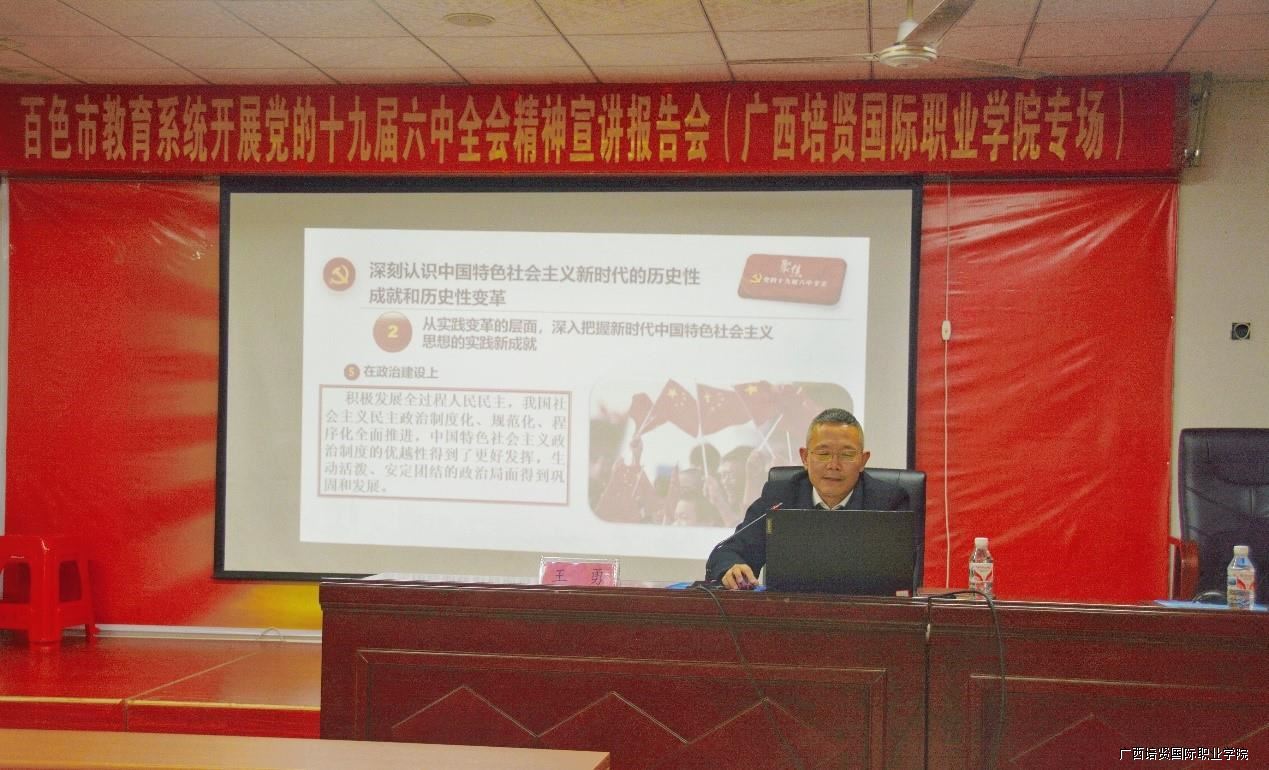 王勇书记首先传达了百色市委教育工委《关于<百色市教育系统开展党的十九届六中全会精神宣讲活动方案>的通知》的工作部署👨‍🎨,要求学校各党支部各部门认真学习✨、抓好落实。