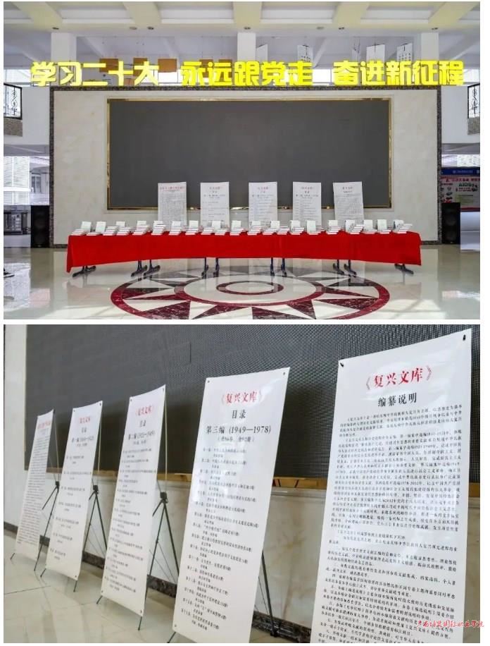 修史立典,存史启智,以文化人➔。期🍳,学校图书馆结合教务处开展的深入学习贯彻习近平总书记为《复兴文库》所作《序言》重要精神活动,将大型历史文献丛书《复兴文库》入藏学校图书馆,并在一教大厅进行《复兴文库》丛书展✳️,深受广大师生喜爱👨🏿‍🌾。