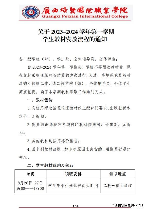 关于2023-2024学年第一学期学生教材发放流程的通知