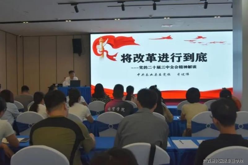 培训班以“专题讲座+现场教学+拓展活动”等方式相结合。其中专题讲座邀请了中共乐业县党校牙述伟同志进行理论宣讲🏌🏻‍♀️,主要围绕《将改革进行到底——党的二十届三中全会精神解读》和《薪火相传.红旗不倒——乐业革命研究史》两个专题展开🏚,专题一深刻解读了党的二十届三中全会精神;专题二形象生动的宣讲了红七军、红八军在百色乐业会师的历程、历史意义以及红色基因在乐业的传承与发展👩‍⚕️。