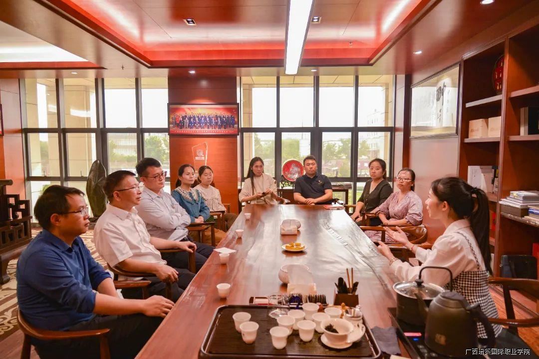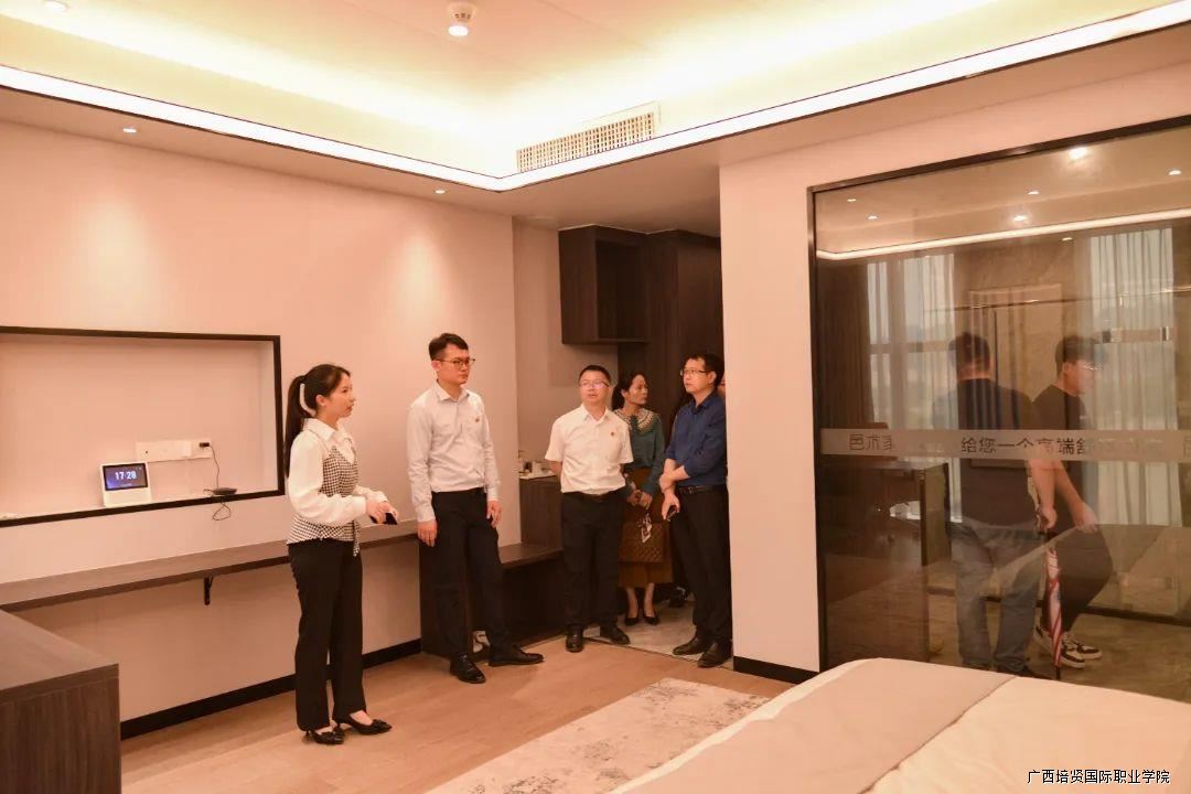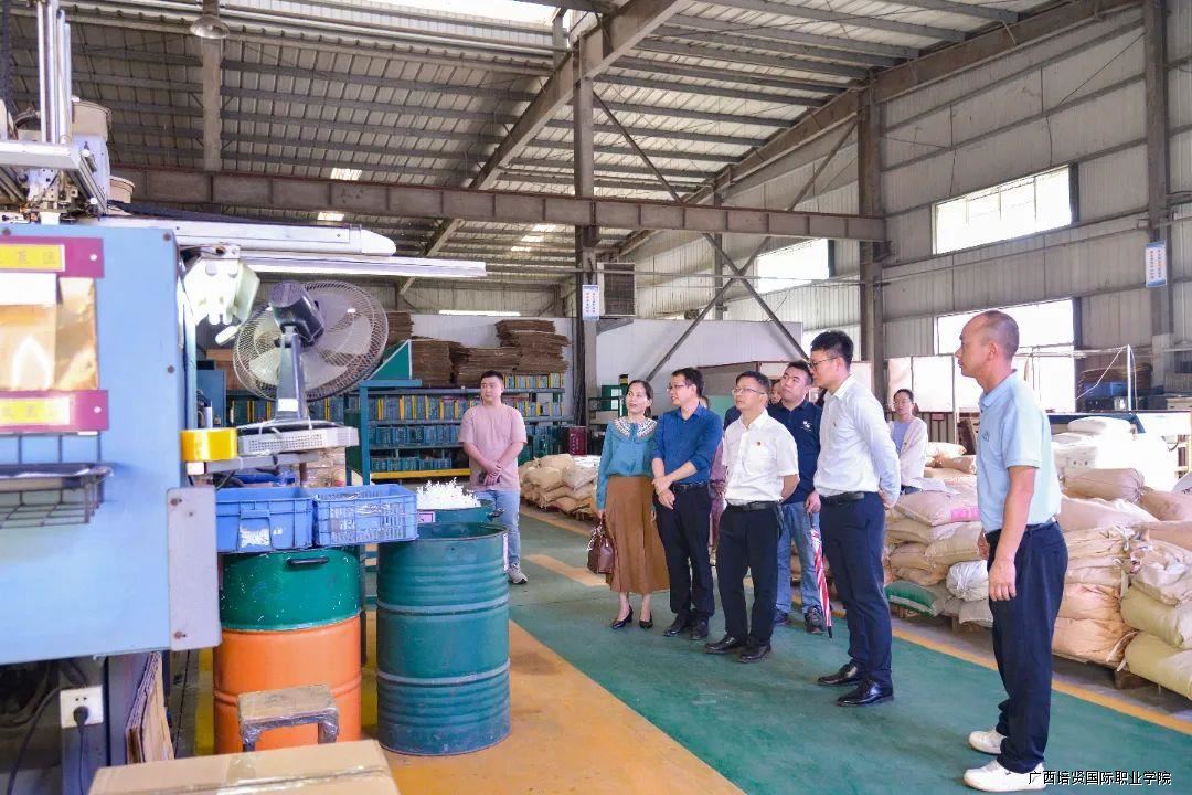 来到广西广邑门业有限公司🪇,先后参观企业文化展览馆、邑术家装饰组合样板间、生产车间等地🙇🏻‍♂️,认真听取接待人员介绍企业发展历程、产品创新和未来规划,仔细询问企业人才需求情况🙅🏽‍♀️,进一步探索校企合作契合度。