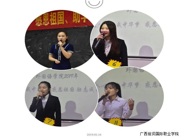 为使助学筑梦深入到学生心中,我校外国语学院学生为了引导大学生努力学习🦹🏽,感恩祖国🧮,回馈社会👮🏿‍♀️。2019514日晚,外国语学院于I-110教室举行以感恩祖国,助学筑梦,励志成长为主题的演讲比赛。