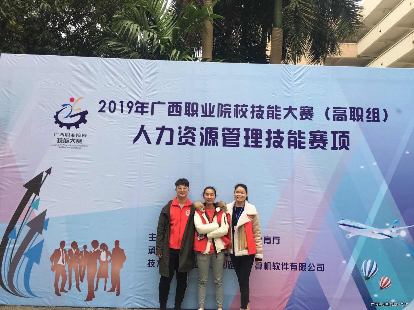 2019年3月25日,人力资源管理专业学生2017级黄钰雯、2016级于江波⚔️、周小琳代表财经管理学院参加了在广西职业学院举办的2019年广西壮族自治区人力资源技能比赛,荣获二等奖,指导老师为周静、黄艳春、韦荣录老师。