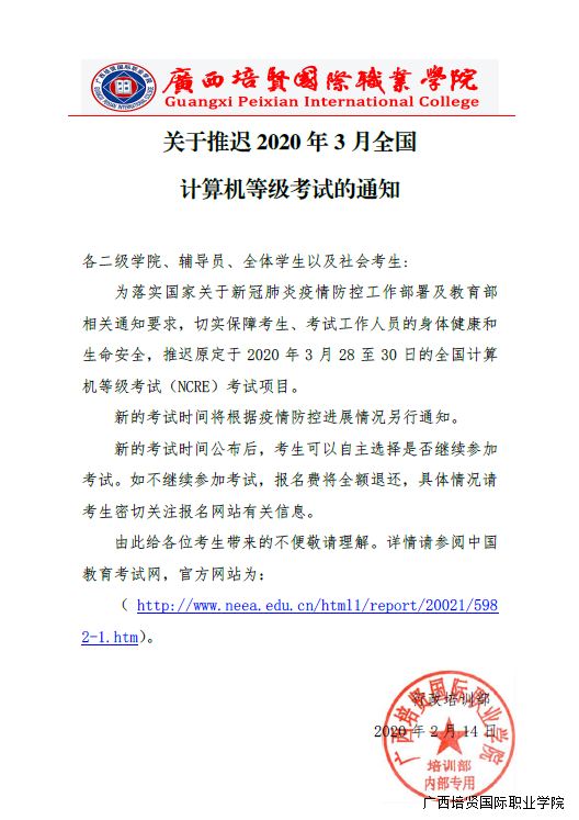 1. 关于推迟2020年3月全国计算机等级考试的通知