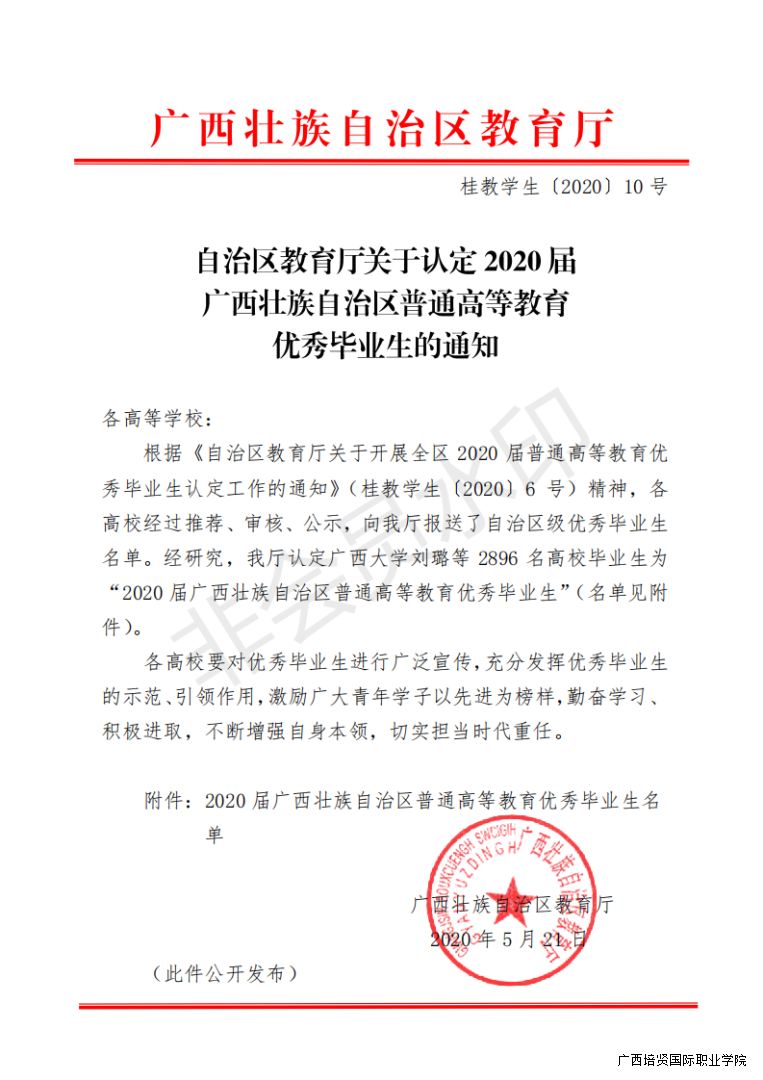 1. 自治区教育厅关于认定2020届广西壮族自治区普通高等教育优秀毕业生的通知