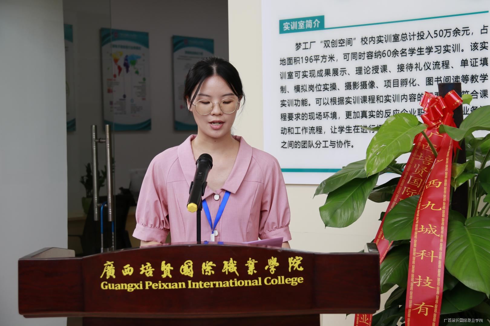 随后,实训室建设方广西九城科技有限公司总经理宋振楚发表讲话,他对实训室的建成投入使用表示热烈祝贺,希望我校能充分发挥实训室的作用🆓,培养出更多理论知识扎实,专业技能过硬,符合社会需求的应用型人才🎥。