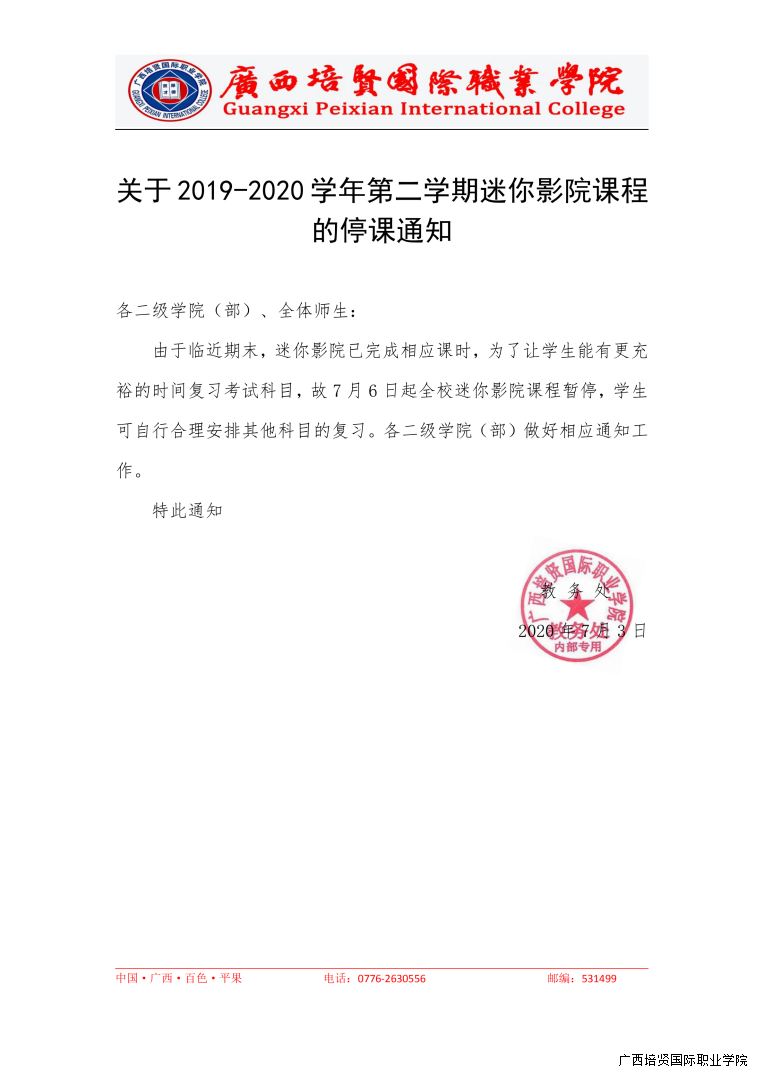 转发教务处《关于2019-2020学年第二学期迷你影院课程停课通知》