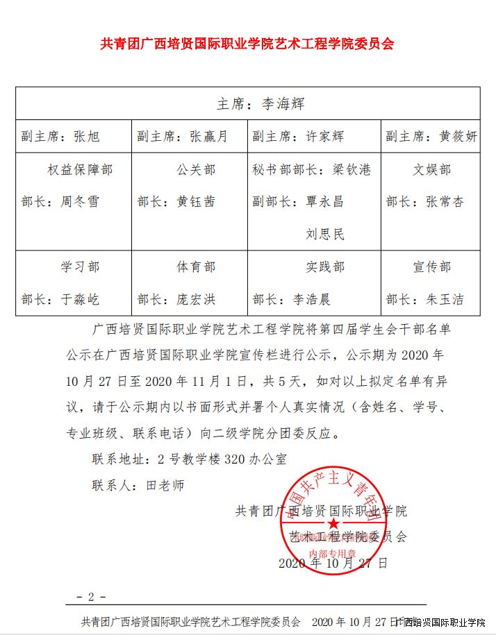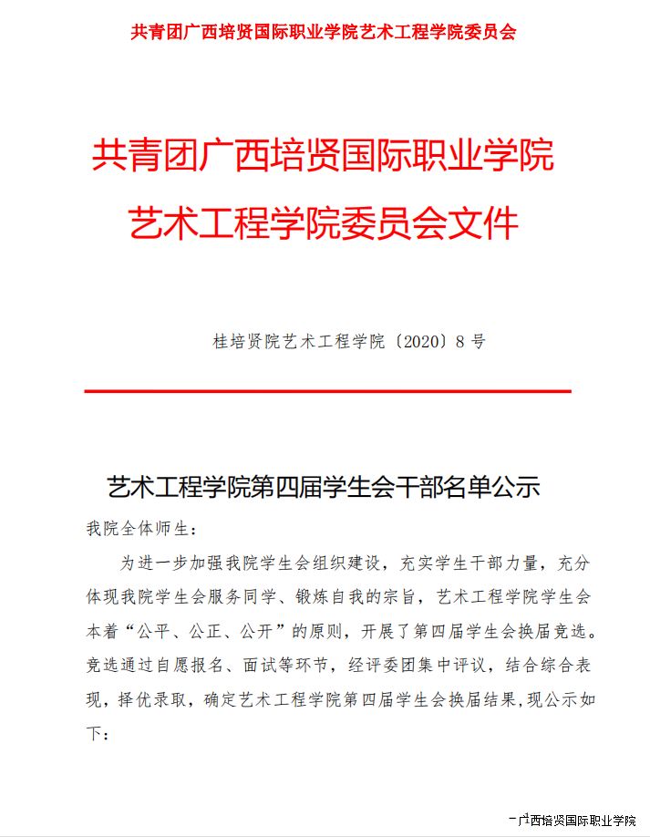 艺术工程学院第四届学生会干部名单公示
