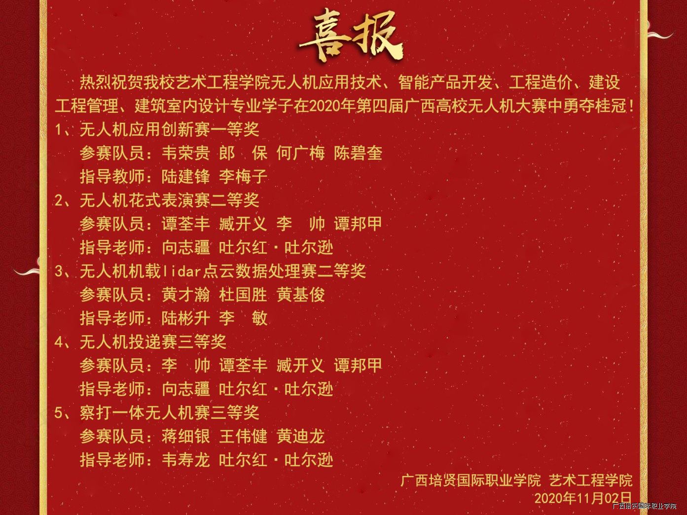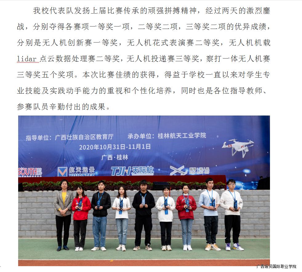 喜报:艺术工程学院学子勇夺第四届广西高校无人机大赛一等奖