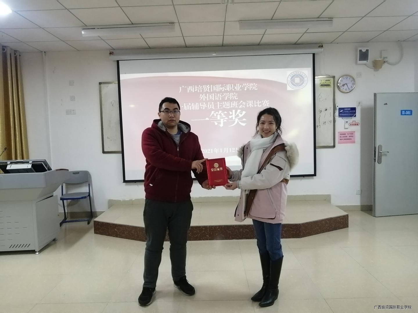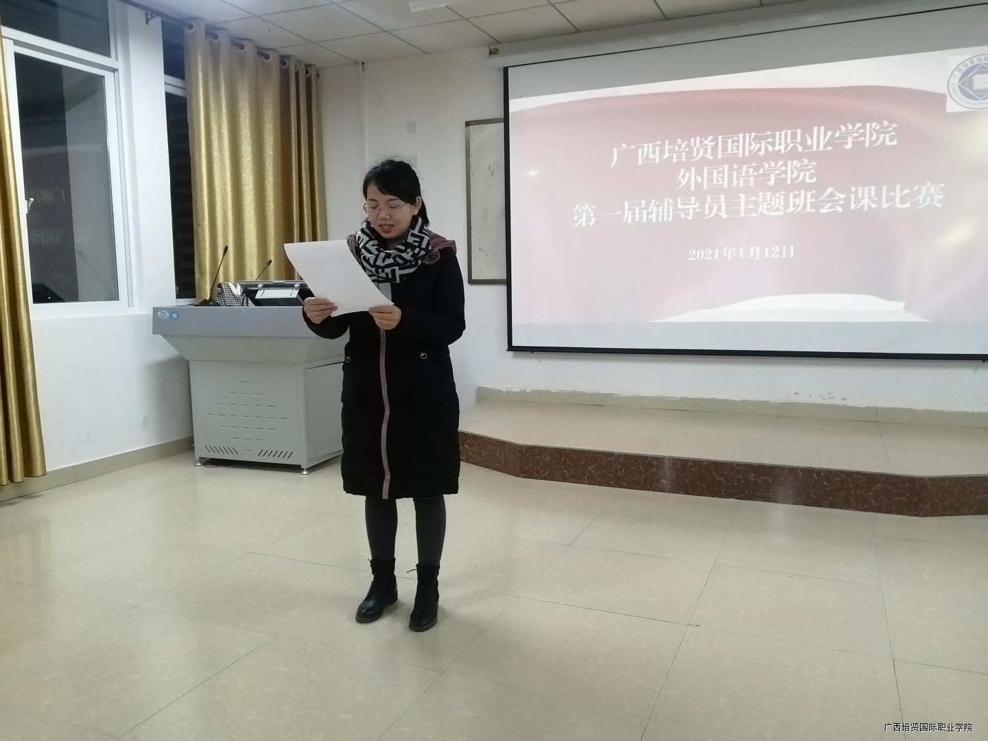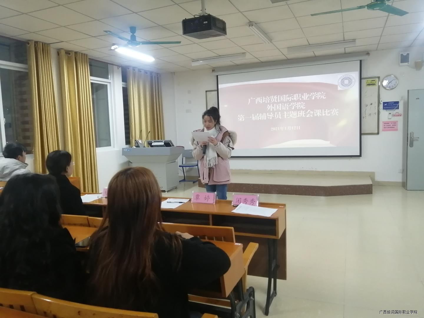 为了进一步提高辅导员的职业技能🧑🦱,充分发挥“主题班会”在学生教育管理中的作用,进一步深化“主题班会”教育系列化、规范化🎰、课程化建设,切实让班会成为辅导员实施教育⛳️、推进班级建设的主要舞台,成为学生自我教育与锻炼成长的平台,不断提高学生综合素质和教育实效,学校特举办广西彩神国际职业学院第二届辅导员主题班会大赛。在此背景下🧑🏼⚕️,我院于2021年1月12日在2-501举办第一届辅导员班会比赛,意在择优选出两名优秀辅导员代表我院参加校级班会比赛🧓🏼,同时在在比赛中达到“以赛促进,以赛促学”的目的,向优秀辅导员学习👳,直面正式自身的不足。