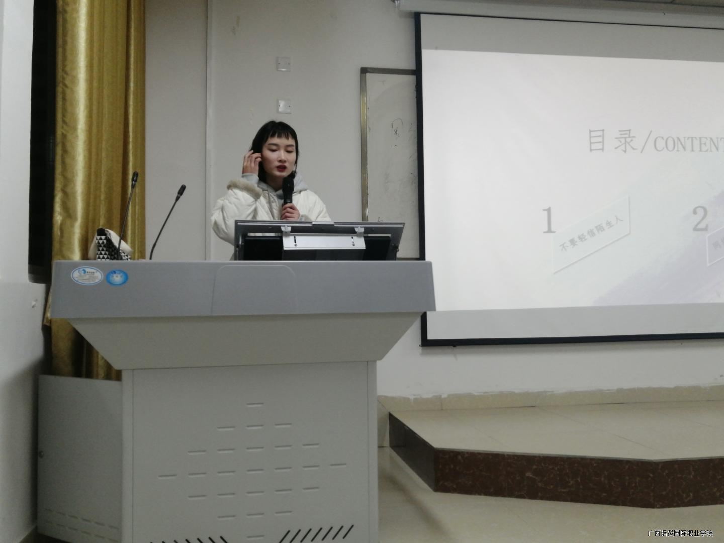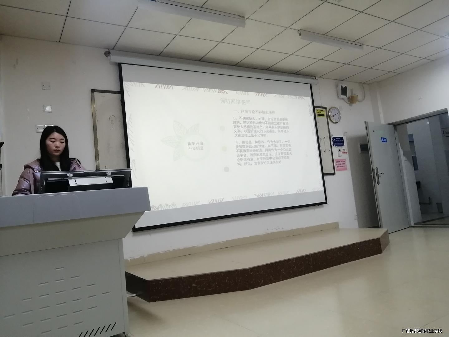 覃永锦老师围绕最近发生的网络诈骗的案例🎪,告诫学生要学会合理利用网络新兴技术的同时要提高警惕心🪯。
