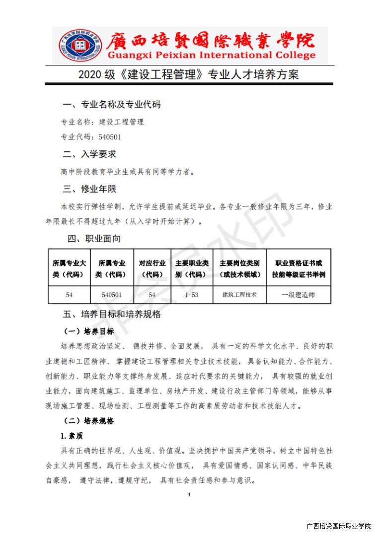 2020级建设工程管理(绿色建筑方向)专业人才培养方案