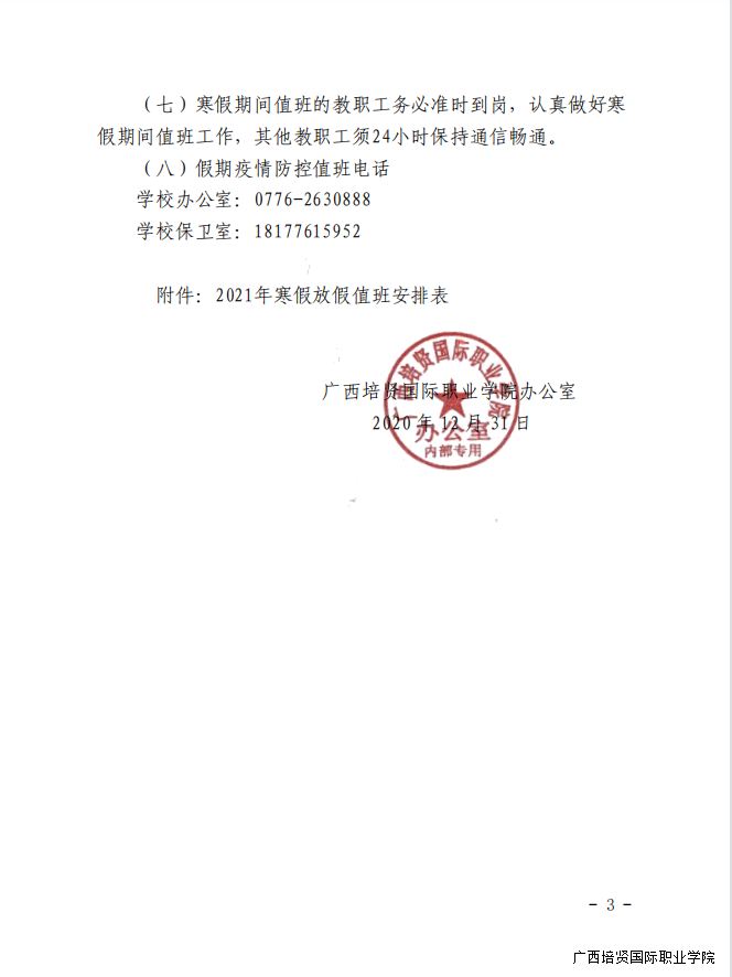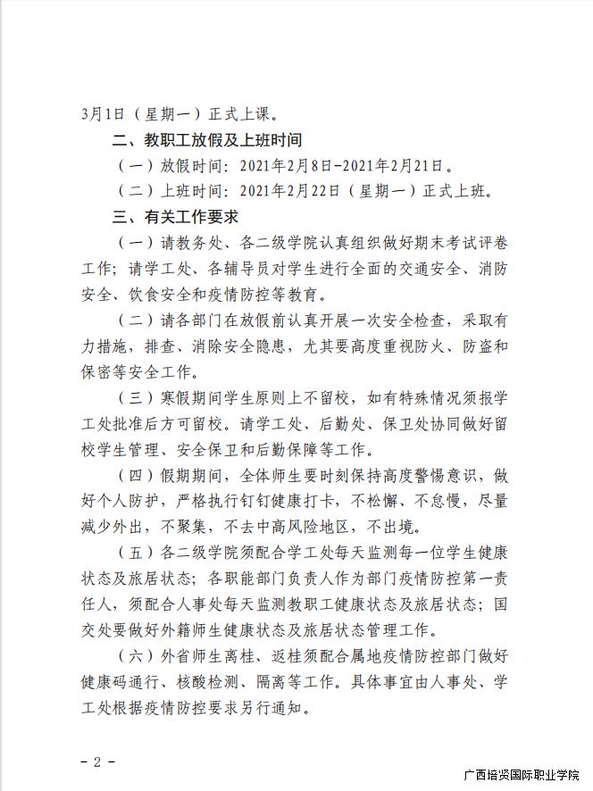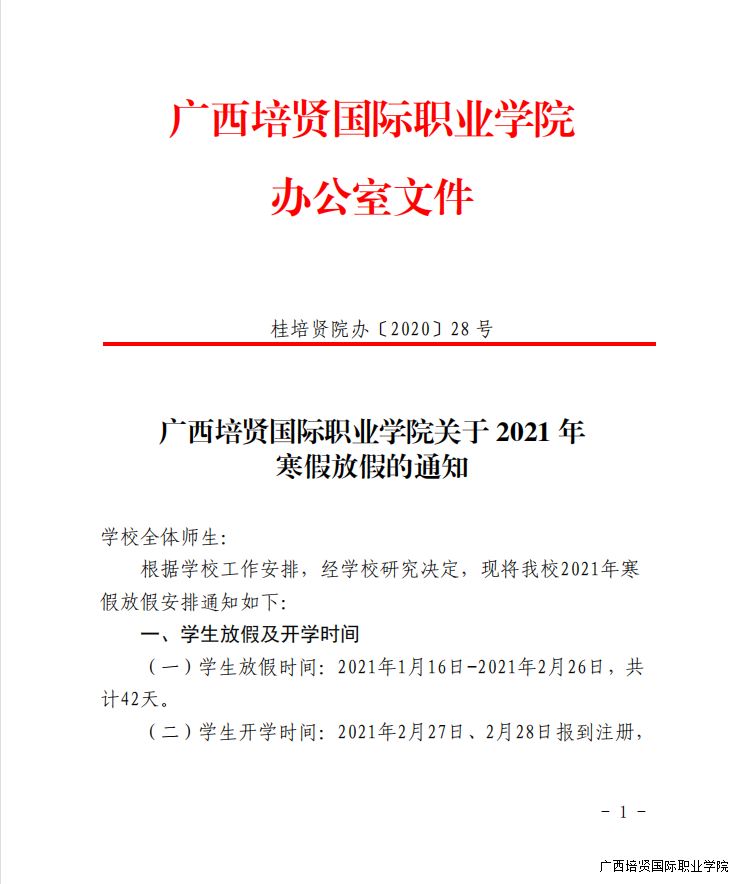1. 关于2021年寒假放假的通知