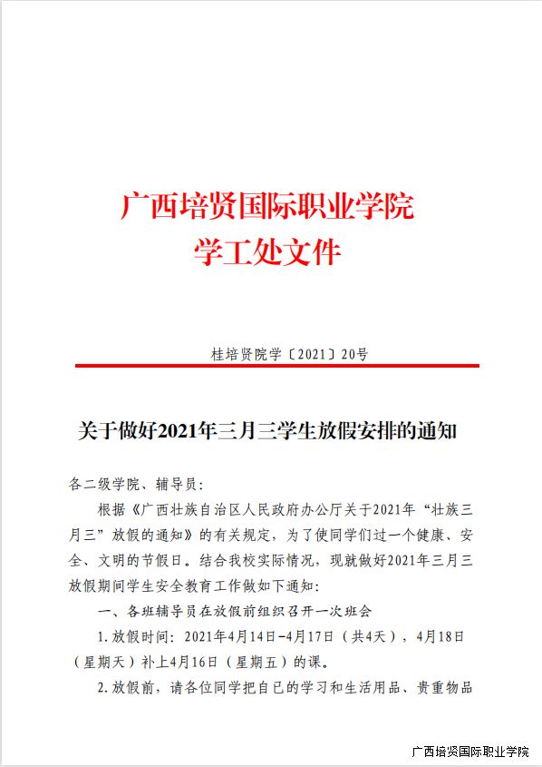 关于做好2021年三月三学生放假安排的通知