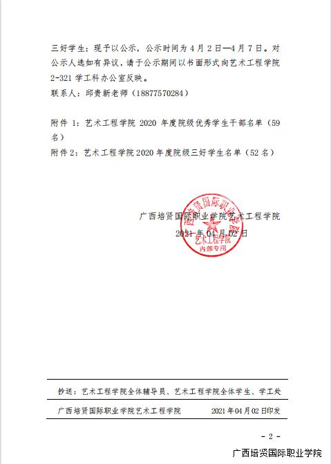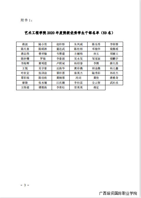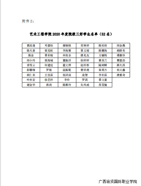 艺术工程学院 2020 年度院级“优秀学生干 部”、“三好学生”名单公示