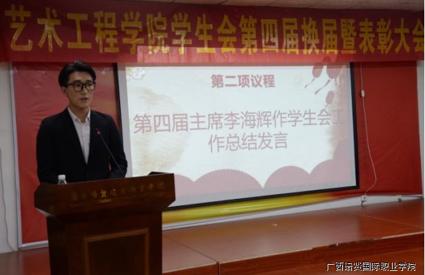 会议第二项议程🩲:艺术工程学院第四届学生会主席李海辉作工作总结♋️。