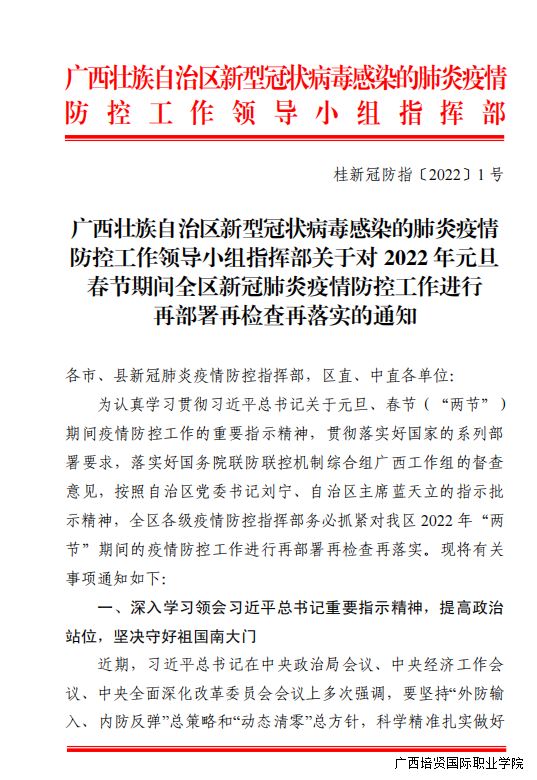 1. 转发疫情防控关于对 2022 年元旦 春节期间全区新冠肺炎疫情防控工作进行 再部署再检查再落实的通知