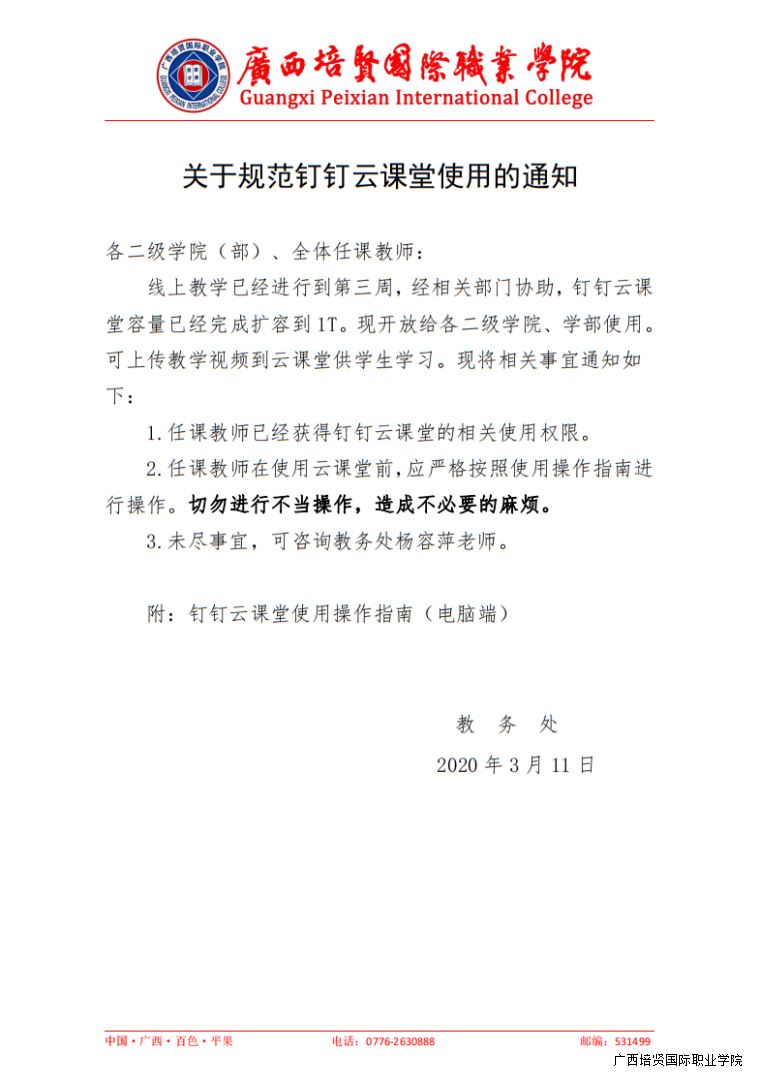 1. 转教务处《关于规范钉钉云课堂使用的通知》