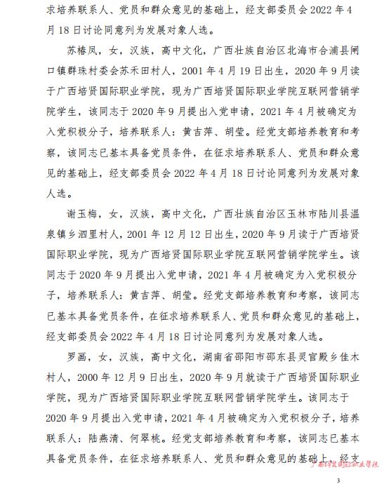 1. 关于确定黄肖榕、向子馨等 17 名同志 为发展对象人选的公示