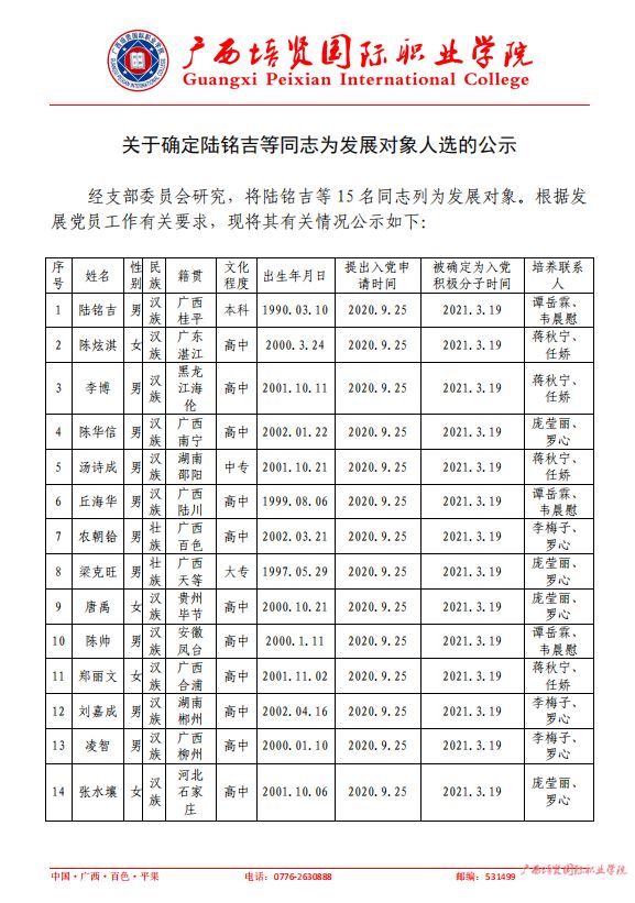 1. 关于确定陆铭吉等同志为发展对象人选的公示