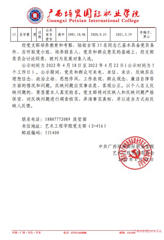 下一篇🏌🏽‍♀️:关于拟将黄凤美、农崇武🙆‍♂️、罗元润等 3 名同志转 为中共正式党员的公示