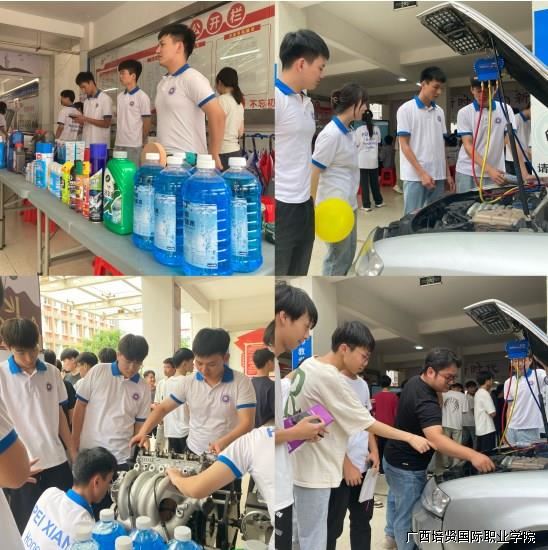 汽车技术服务与营销专业展区向同学们展示了汽车、汽车发动机🧗🏿♀️、汽车维修工具、汽车养护工具等全套设备。