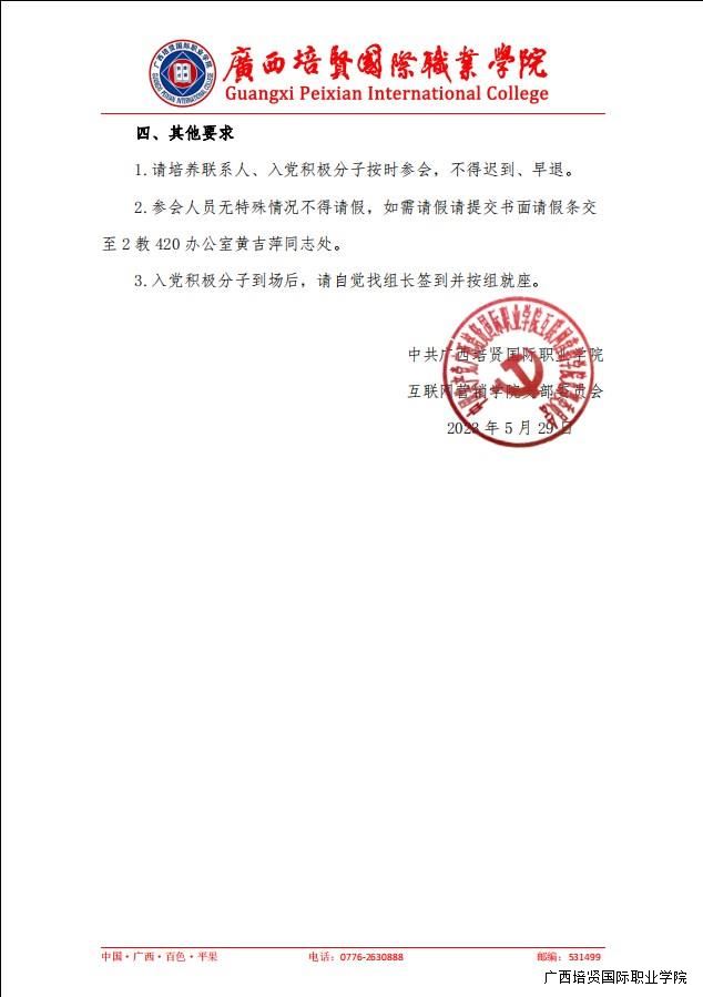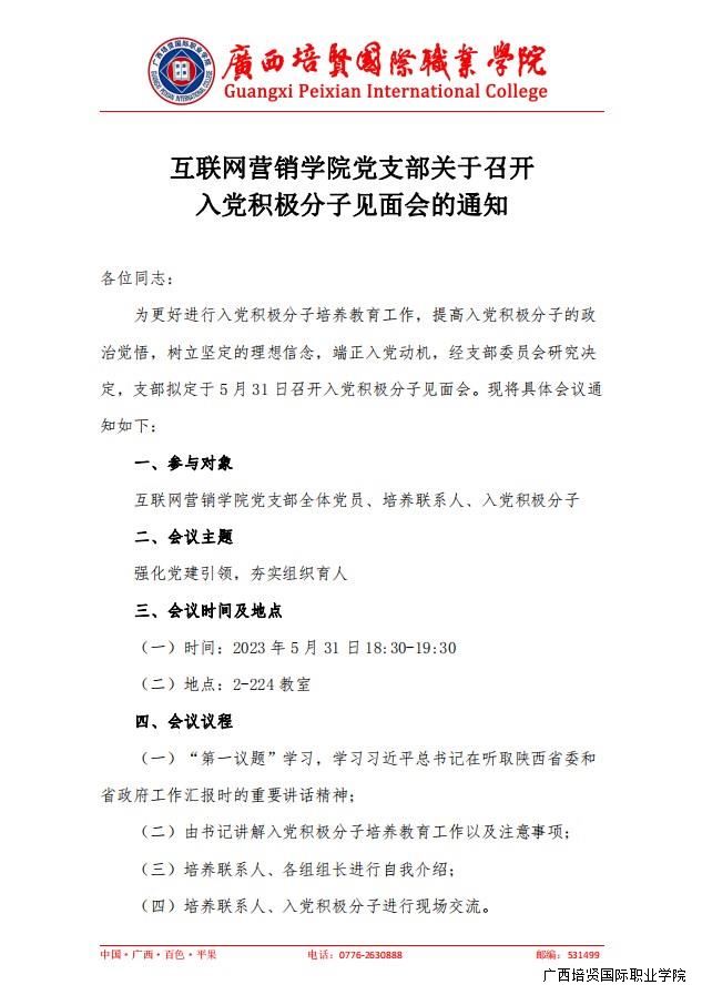 1. 互联网营销学院党支部关于召开入党积极分子见面会的通知