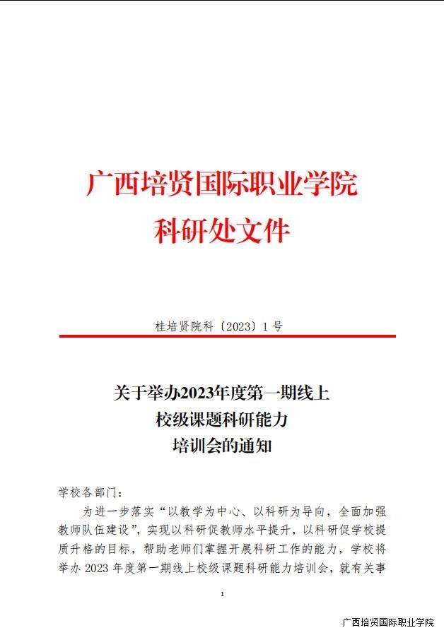转学院科研处关于举办2023年度第一期线上校级课题科研能力培训会的通知