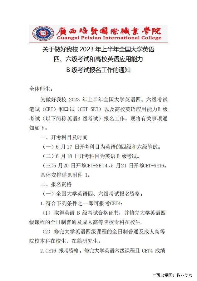 转行政培训部关于做好我校2023年上半年全国大学英语四、六级考试和高校英语应用能力B级考试报名工作的通知