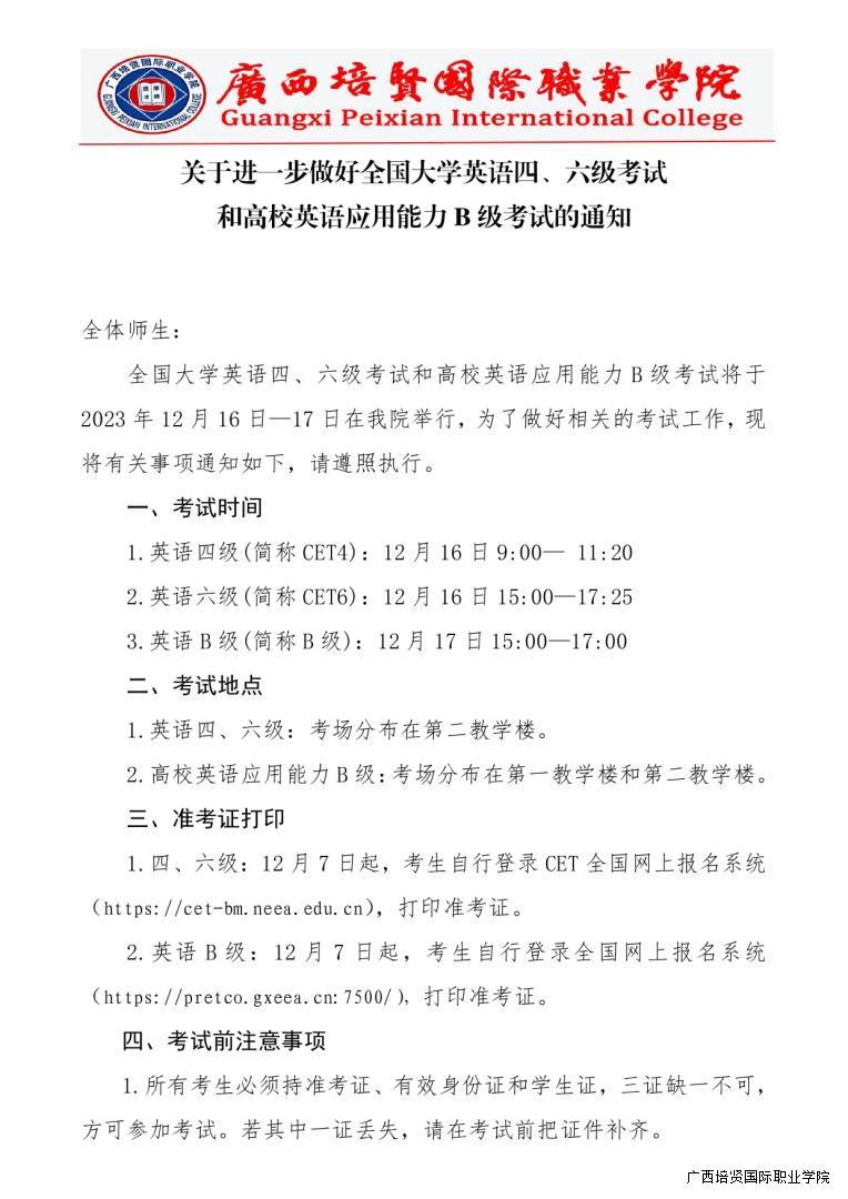 转行政培训部《关于进一步做好全国大学英语四、六级考试和高校英语应用能力B级考试的通知》