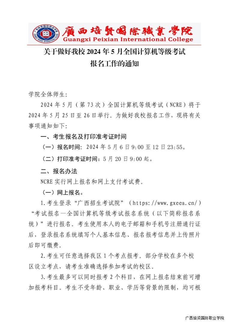 转行政培训部《关于做好我校2024年5月全国计算机等级考试报名工作的通知》