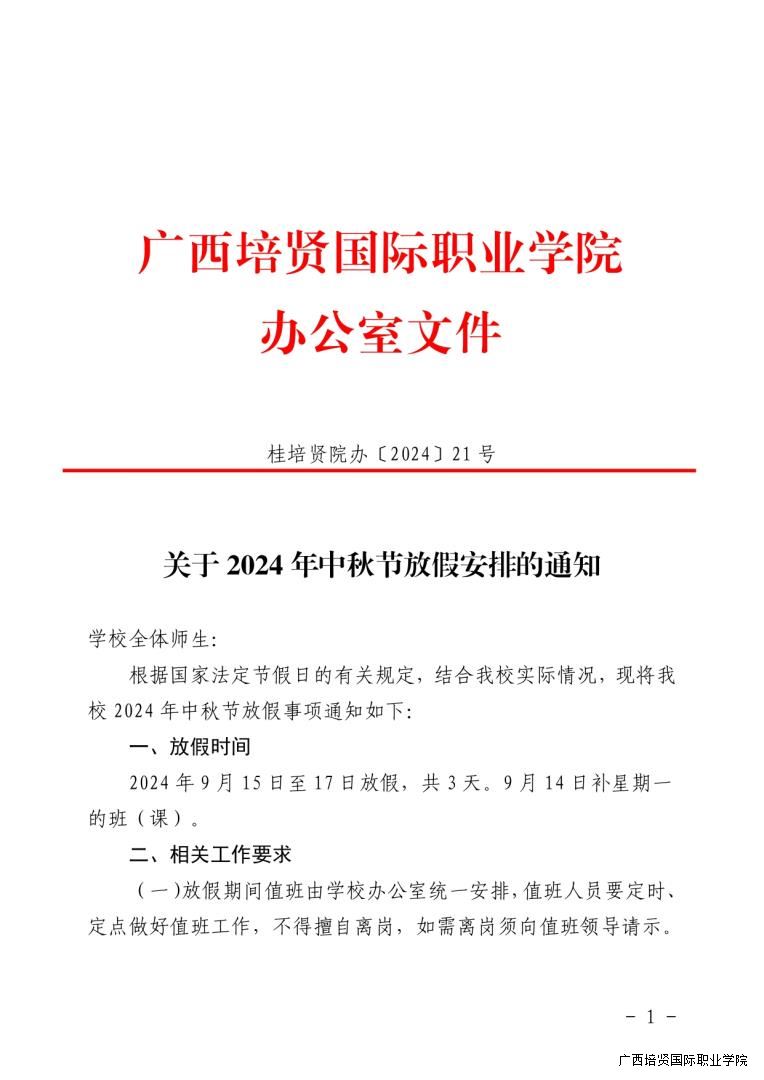 转学院办公室《关于2024年中秋节放假安排的通知》